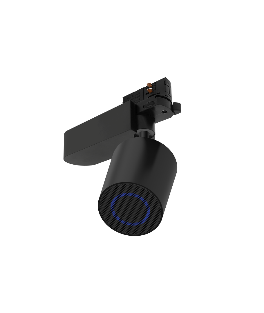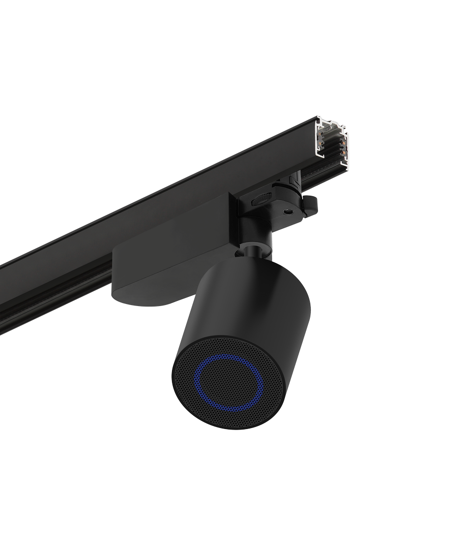 Den svarta Bluetooth-högtalaren för 3-fas skenor erbjuder en innovativ ljudlösning som enkelt integreras i dina befintliga skensystem.
