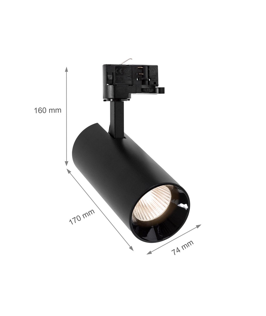 Huvudfunktioner:Spotlighten ansluts enkelt till 230V och är designad för att passa de flesta standardiserade 3-fas skensystem, vilket gör den lätt att installera och anpassa efter ditt utrymme.