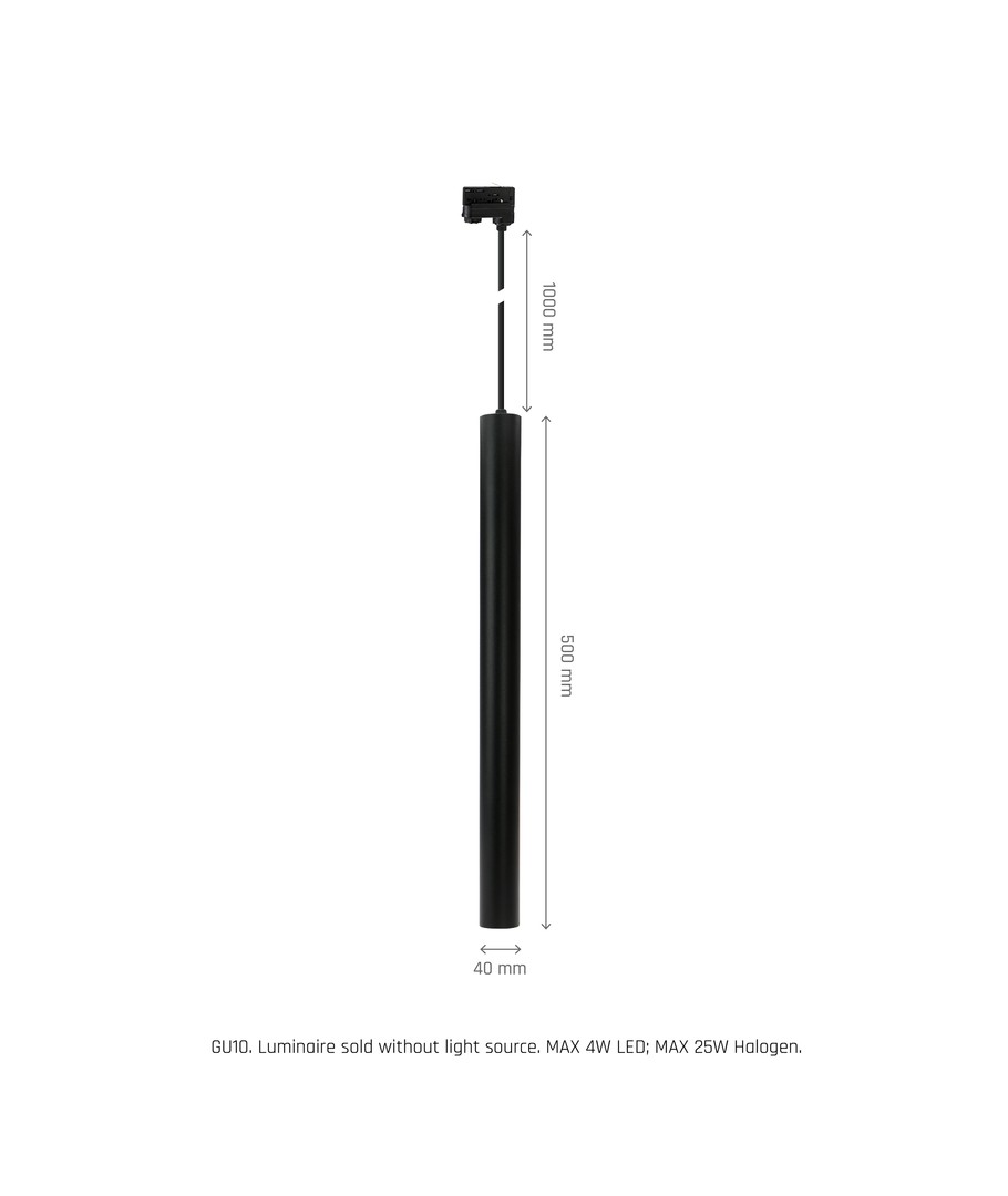 Elegant LED-skenspot till 3-fas skensystem med driftdonslådan längs med skenan.