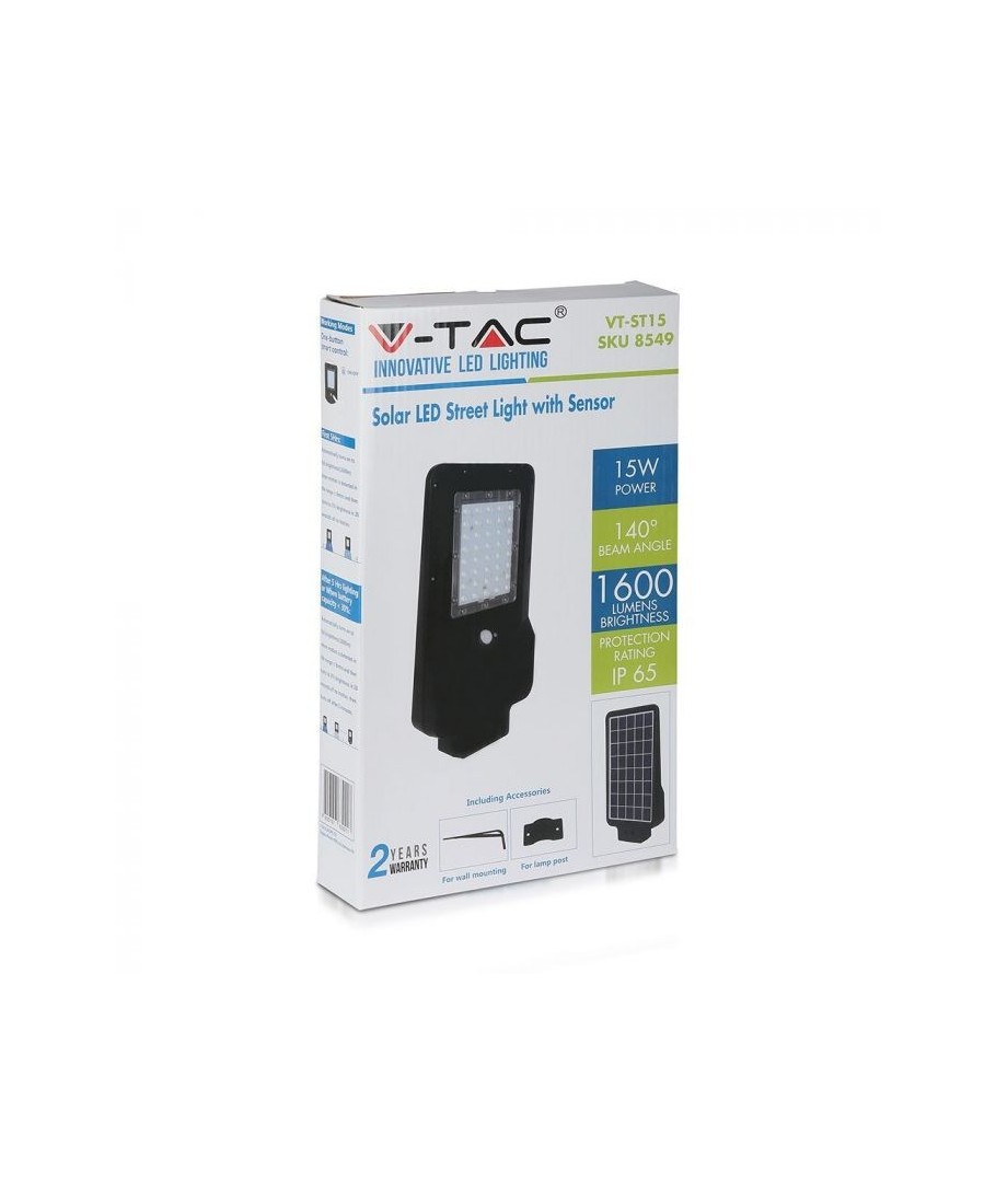 Denna V-Tac 15W Solar gatulampa i klassisk svart färg är inte bara ett val för ekonomi och effektivitet, utan också en pålitlig lösning för en miljövänlig och vacker utomhusbelysning.