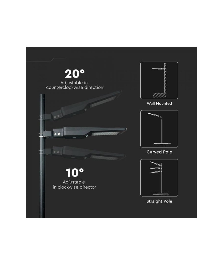 Denna högpresterande gatulampa kombinerar modern teknologi med miljövänligt tänkande, vilket gör den till ett utmärkt val för både privata fastigheter och offentliga miljöer.