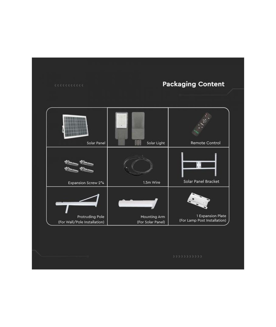 Denna 30W Solar LED gatulampa från V-Tac är utformad för att ge kvalitetsbelysning samtidigt som den är energieffektiv och hållbar. Med dess solpanel och medföljande fjärrkontroll blir den en smart och praktisk lösning för utomhusbelysning.
