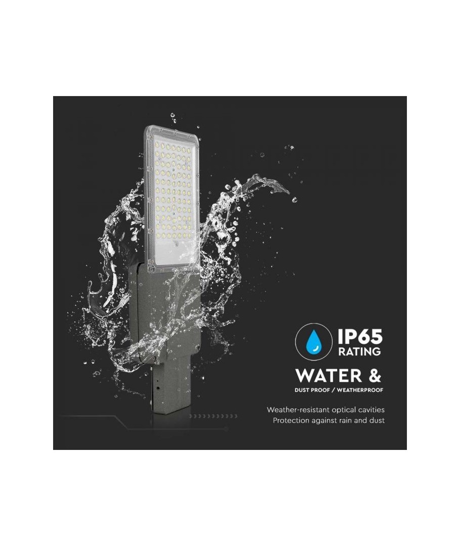 Med dimensionerna 200 x 530 mm är denna gatulampa kompakt nog för att passa in i olika miljöer men tillräckligt stor för att ge tillräcklig belysning. Den har en IP65-klassning, vilket innebär att den är resistent mot vattenstänk och regn, vilket gör den till ett utmärkt val för utomhusbruk.