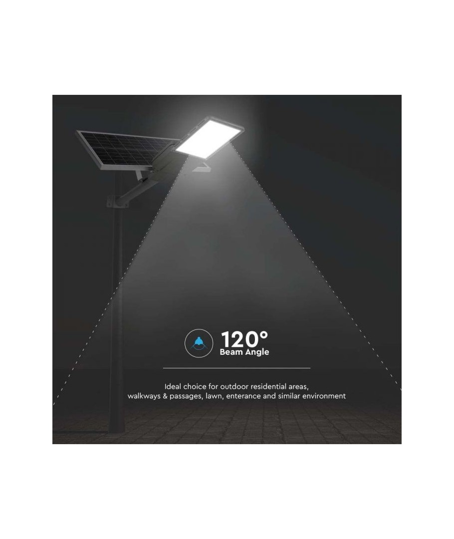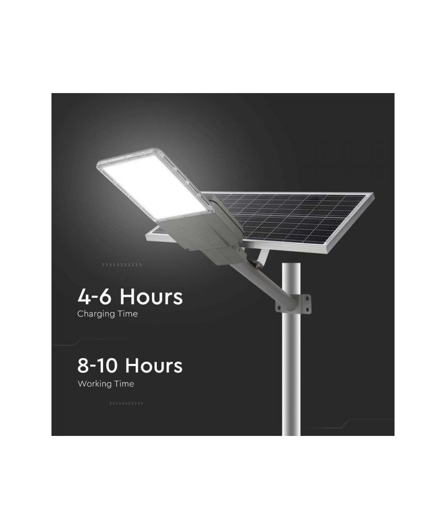 Skapa ljus i dina utomhusområden med V-Tac LED Solar gatlykta. Denna lampa är utrustad med en solpanel på 60W vilket gör det möjligt att lysa upp området i upp till 8-10 timmar på bara 4-6 timmars laddning. Med en IP65-klassning är lampan även lämplig för utomhusbruk och tål olika väderförhållanden. Med den medföljande fjärrkontrollen kan du enkelt styra och justera ljusintensiteten efter behov. Denna gatlykta är idealisk för att belysa stigar, trädgårdar och andra utomhusmiljöer, vilket säkerställer att du alltid har ljus när du behöver det.