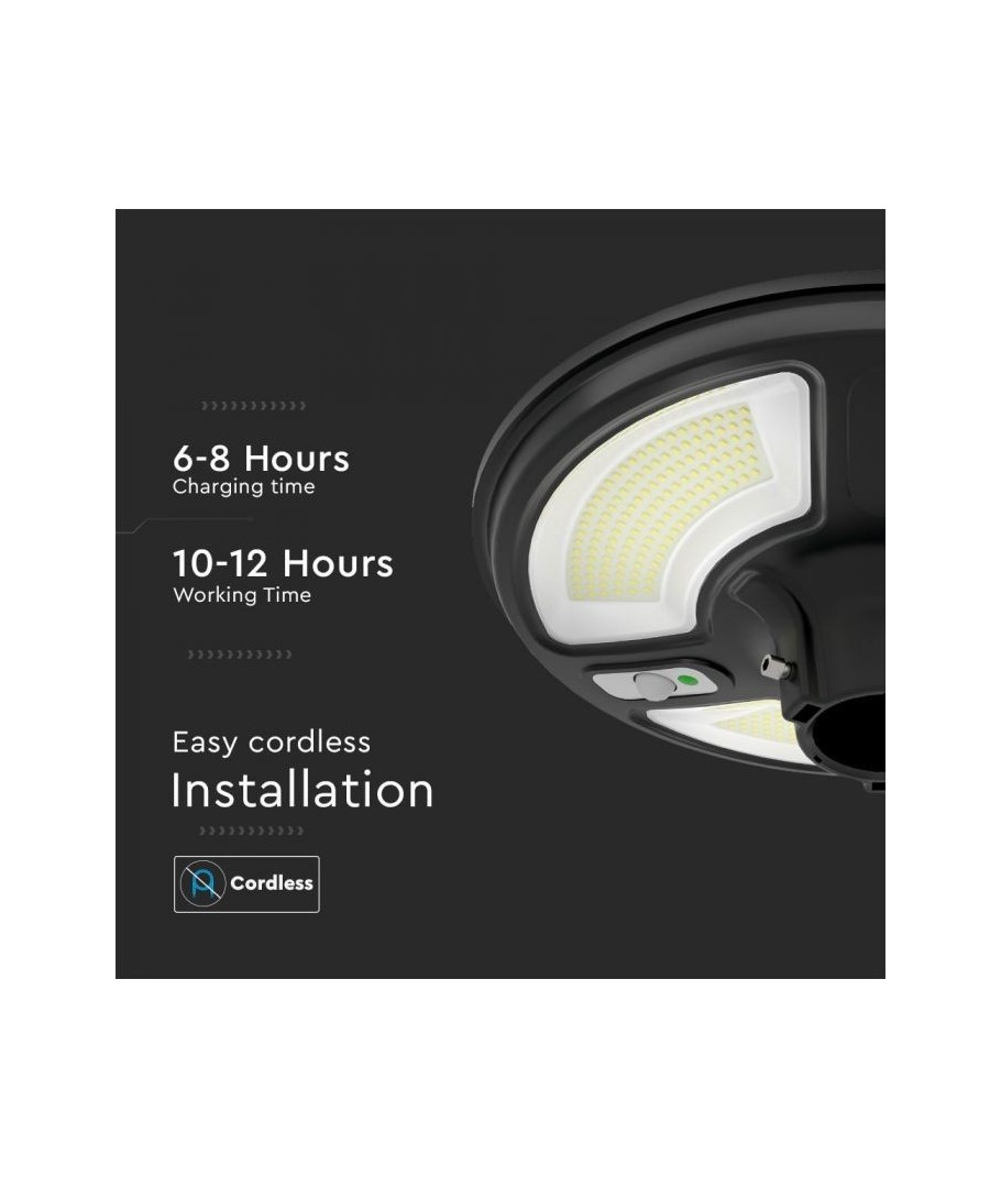 V-Tac 7,5W LED Solar trädgårdslampa är den perfekta lösningen för att lysa upp din trädgård på ett energieffektivt och miljövänligt sätt. Den svarta lampan kommer med en solcell som laddas på bara 6-8 timmar och ger upp till 10-12 timmars ljus. Med en sensor med en räckvidd på 6 meter reagerar lampan automatiskt på rörelser och tänder ljuset vid behov. Lampan har en IP65-klassning, vilket gör den lämplig för utomhusbruk och skyddar den mot damm och vatten. Med en 15W solpanel kan denna lampa generera tillräckligt med energi för att lysa upp din trädgård på ett effektivt och hållbart sätt.