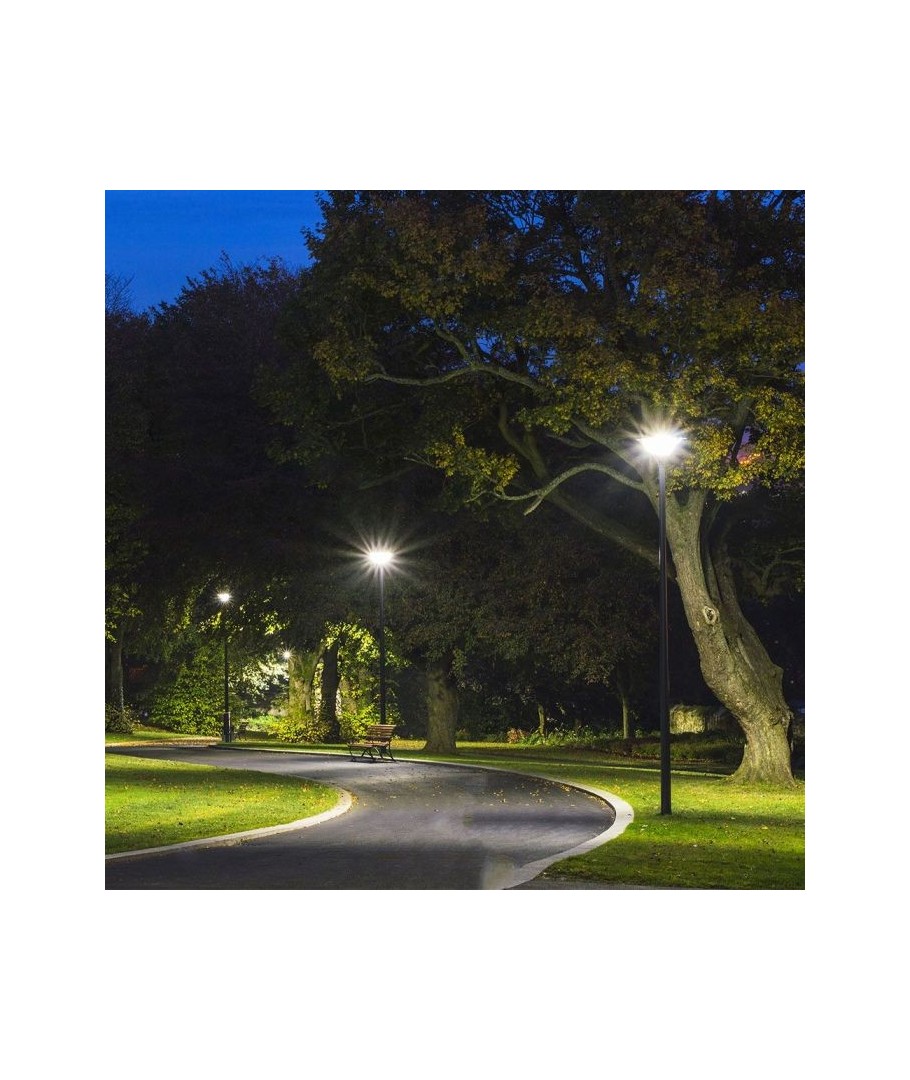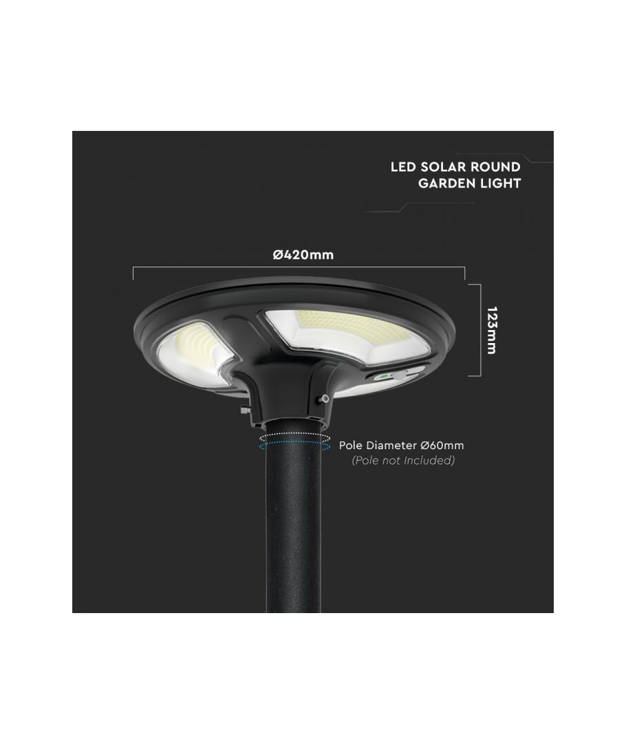Den här robusta trädgårdslampan erbjuder en innovativ och energisnål belysningslösning som är perfekt för alla utomhusområden. Med sin eleganta svarta finish och generösa diameter på 42 cm smälter den lätt in i olika trädgårdsmiljöer och utomhusdekorationer.