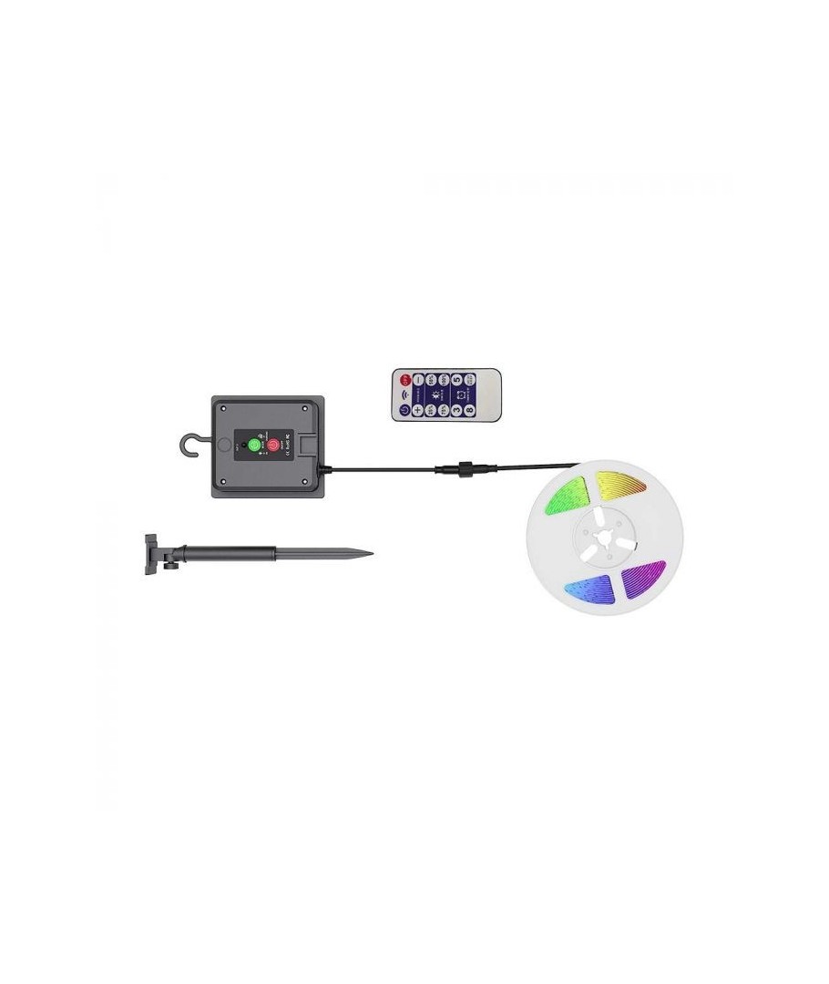 RGB-strip är den perfekta lösningen för att skapa atmosfärisk belysning utomhus. Den 5 meter långa LED-strip är utrustad med RGB-färgväxling, som kan styras med den medföljande fjärrkontrollen. Solpanelen kan enkelt monteras via spett eller hängas upp, vilket gör det enkelt att placera den på önskad plats. Den IP67-certifierade strip är vattentät och lämplig för utomhusbruk. Med denna LED-solcellsstrip kan du skapa en fantastisk atmosfär och förvandla din trädgård eller terrass till ett ljust och färgglatt utrymme.
