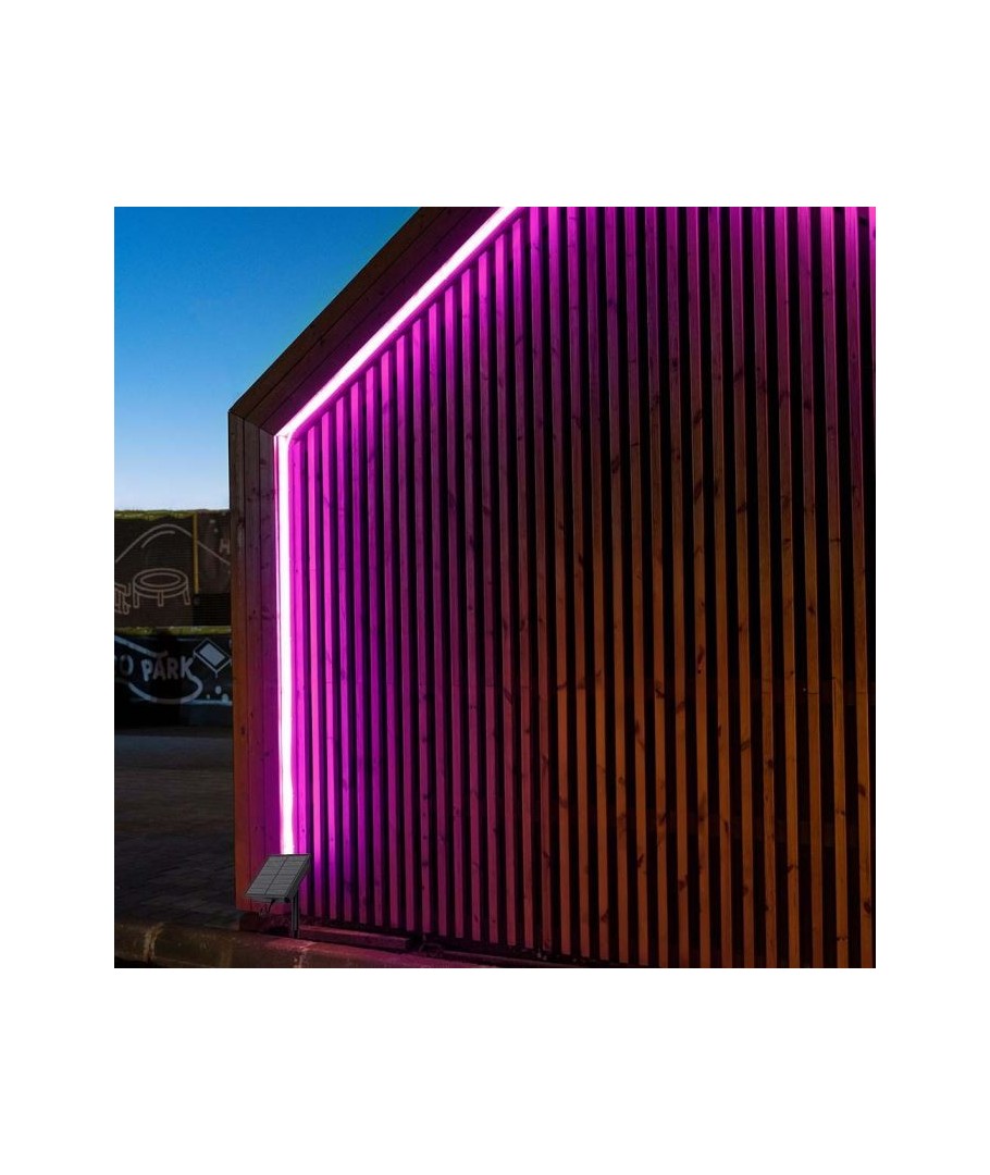 Skapa en inbjudande atmosfär i din trädgård eller på din uteplats med denna LED Solar RGB-list. Med sina 5 meter är den perfekt för att belysa långa avstånd och dess breddspridning på 120 grader garanterar en jämn fördelning av ljuset. Låt din kreativitet flöda och ge dina utrymmen en unik karaktär.