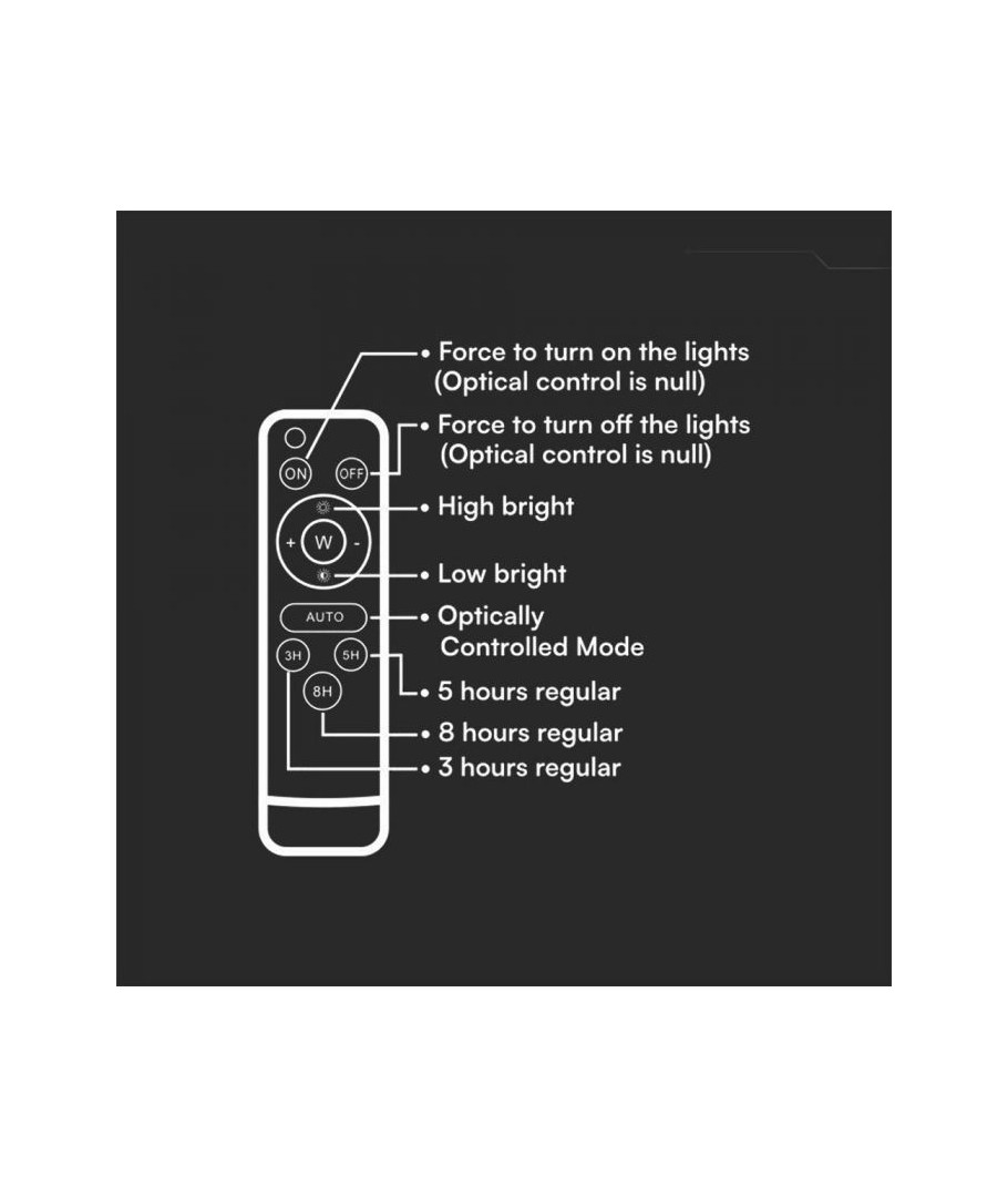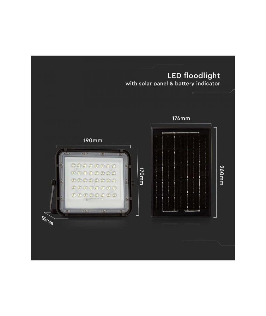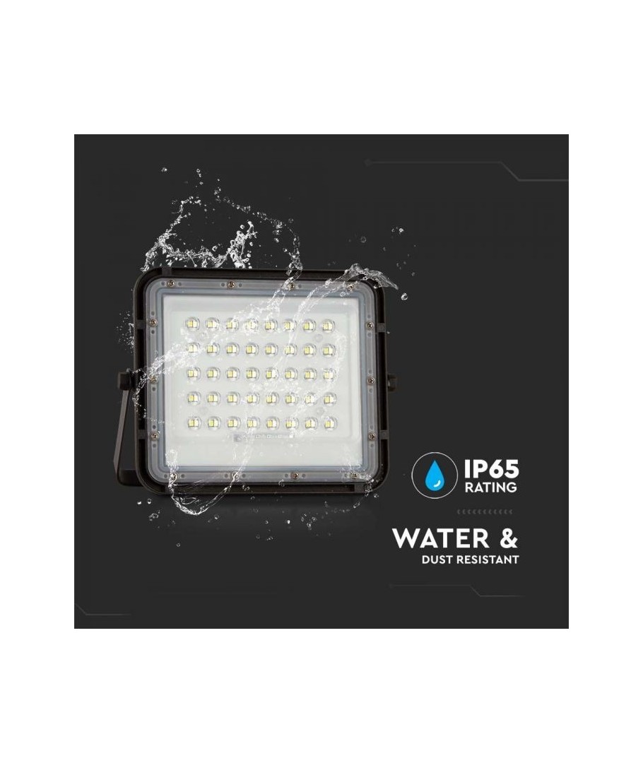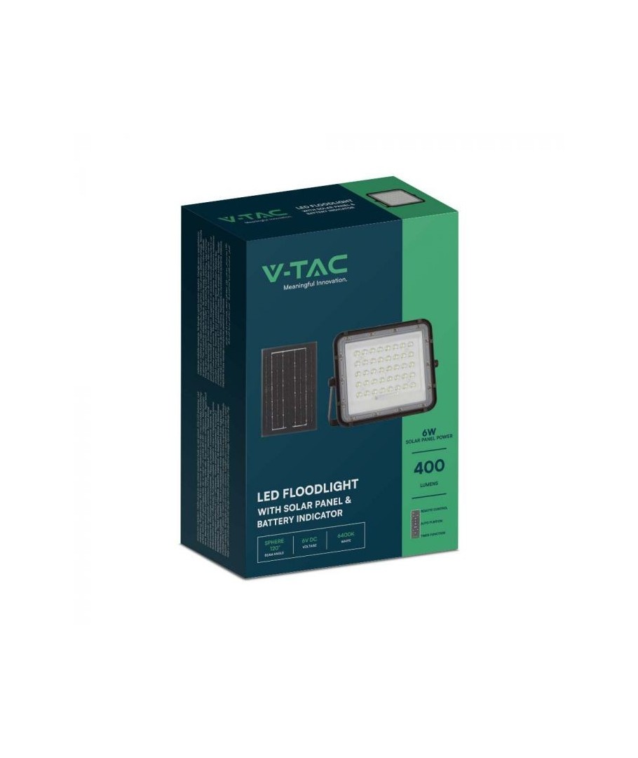 V-Tac 6W LED Solar strålkastare - Svart, en praktisk och energieffektiv lösning för utomhusbelysning. Denna strålkastare inkluderar en solcell och fjärrkontroll och är designad för att klara alla väderförhållanden med sin IP65-klassning. Den har även en praktisk timerfunktion som låter dig ställa in den så att den stängs av automatiskt efter en viss tidsperiod. Med en full laddningstid på endast 4-6 timmar kan denna projektor ge 12 timmars ljus. Den kommer också med en 3 meter lång sladd som ger dig flexibiliteten att placera den där du behöver den.