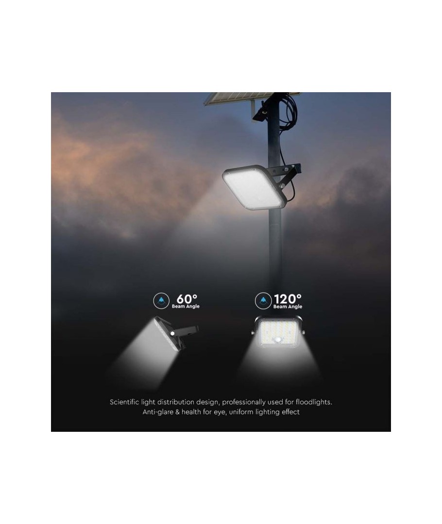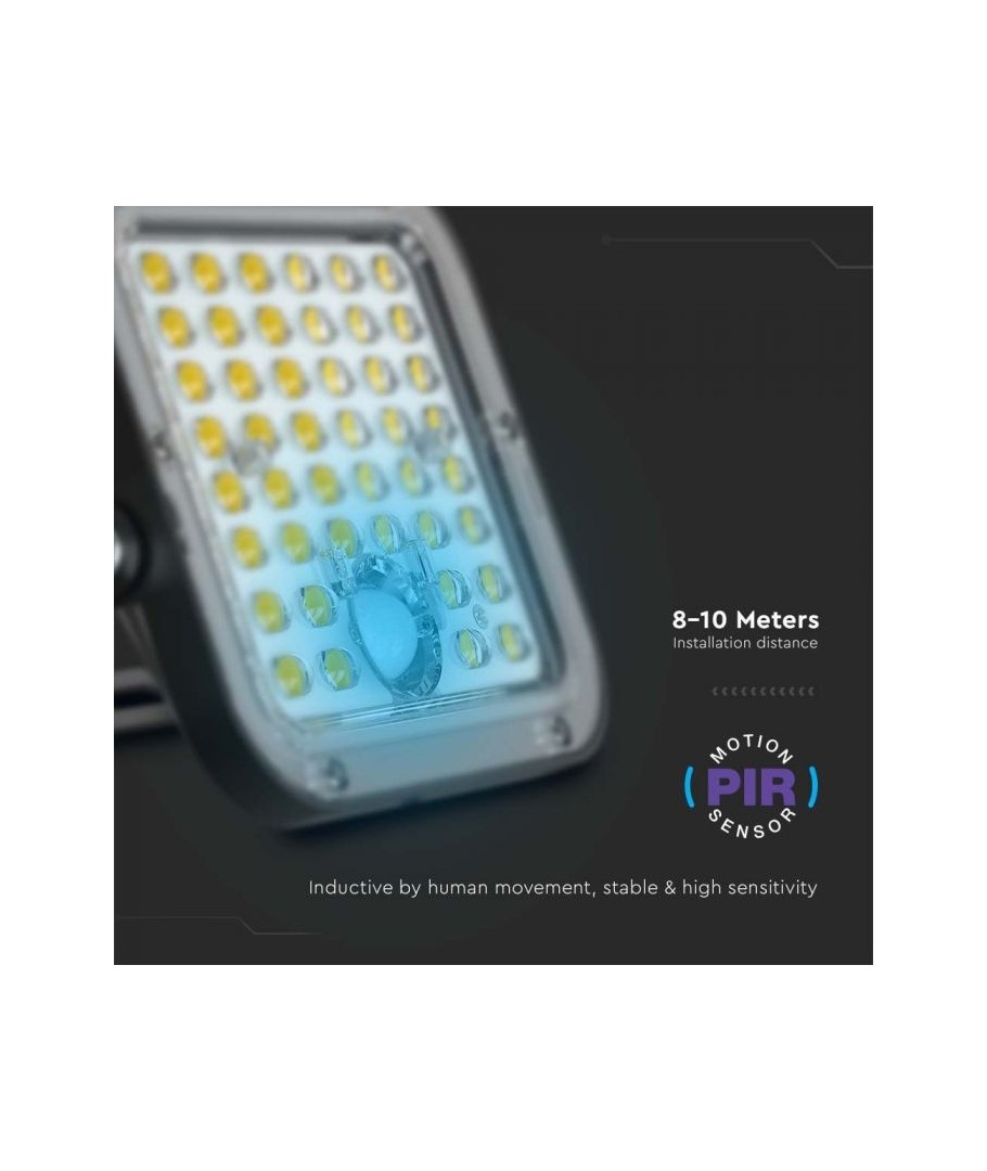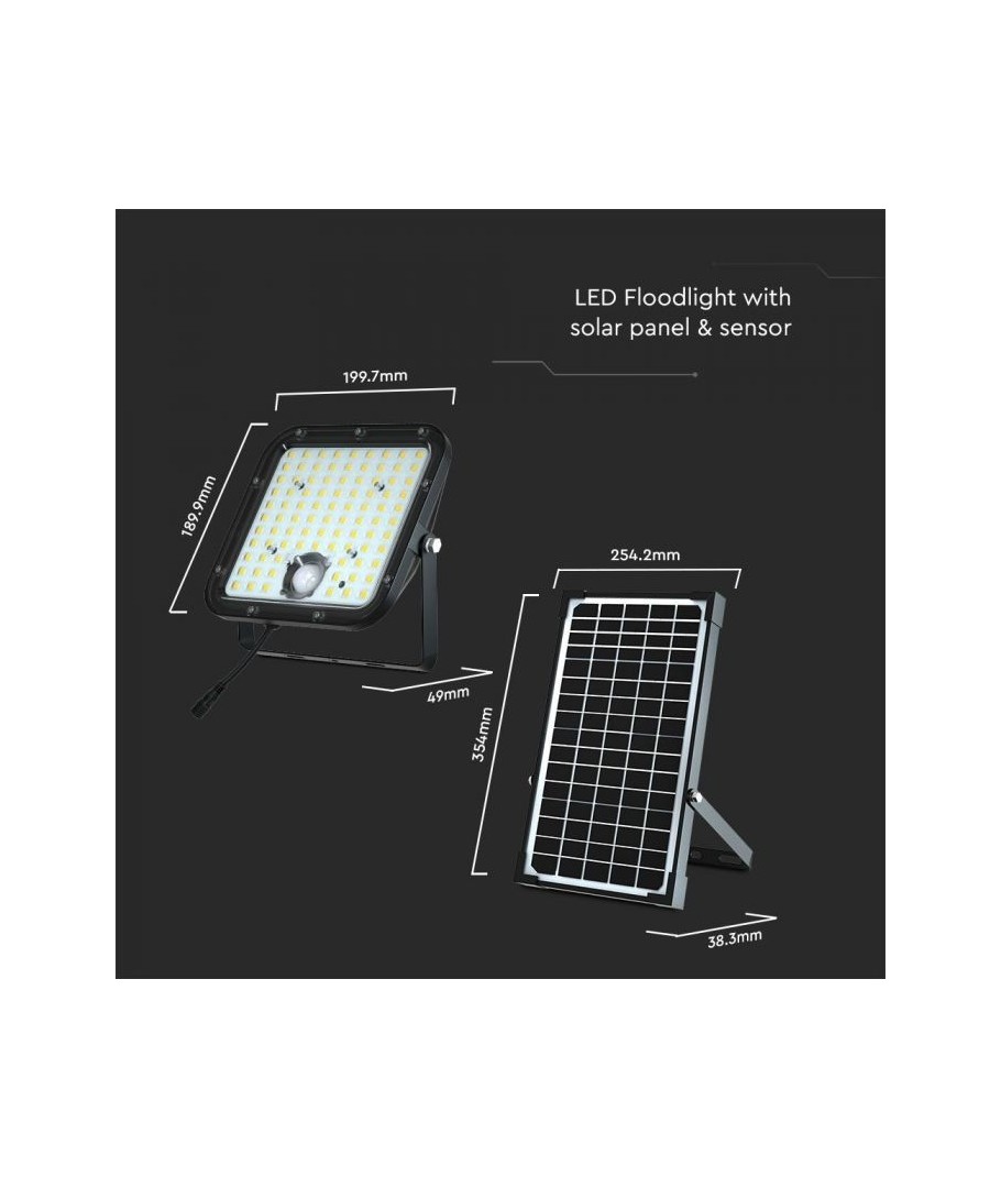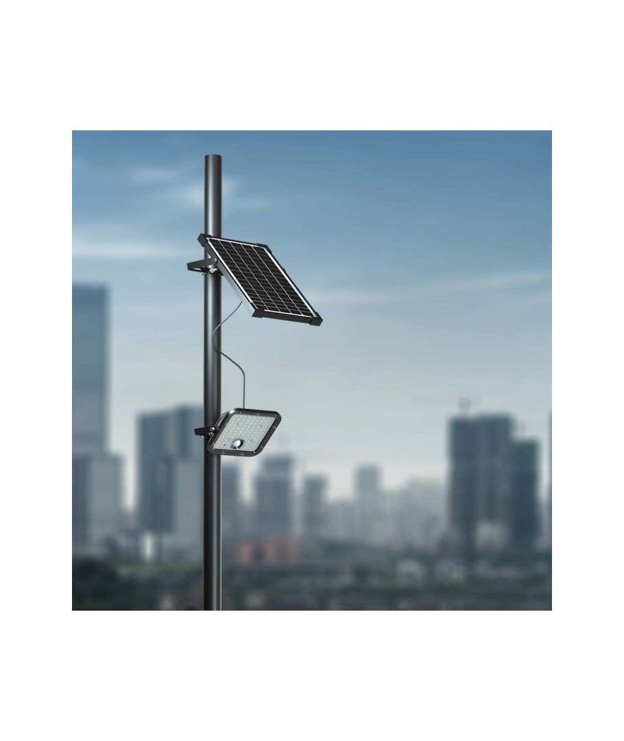 V-Tac 30W LED Solar strålkastare - Svart, en praktisk och energieffektiv lösning för utomhusbelysning. Denna strålkastare inkluderar en solcell och fjärrkontroll och är designad för att klara alla väderförhållanden med sin IP65-klassning. Den har även en praktisk timerfunktion som låter dig ställa in den så att den släcks automatiskt efter en viss tidsperiod. Med en full laddningstid på endast 4-6 timmar kan denna projektor ge 60 timmars ljus. Den kommer också med en sladd, vilket ger dig flexibiliteten att placera den där du behöver den.