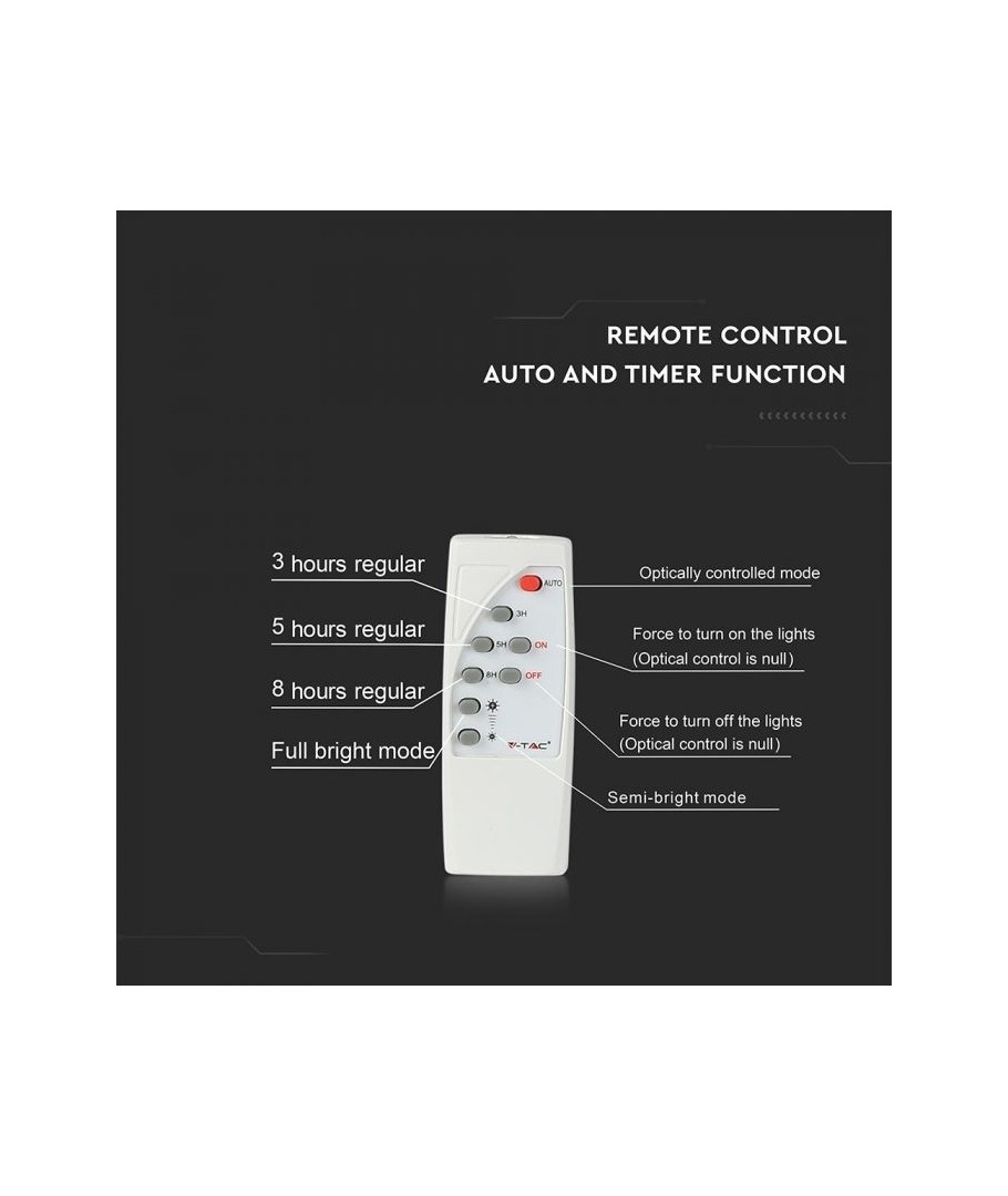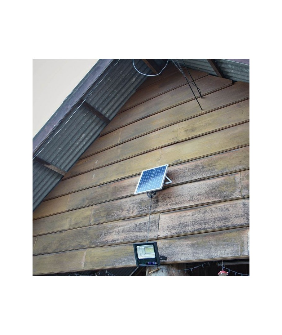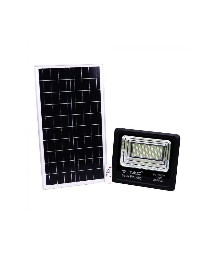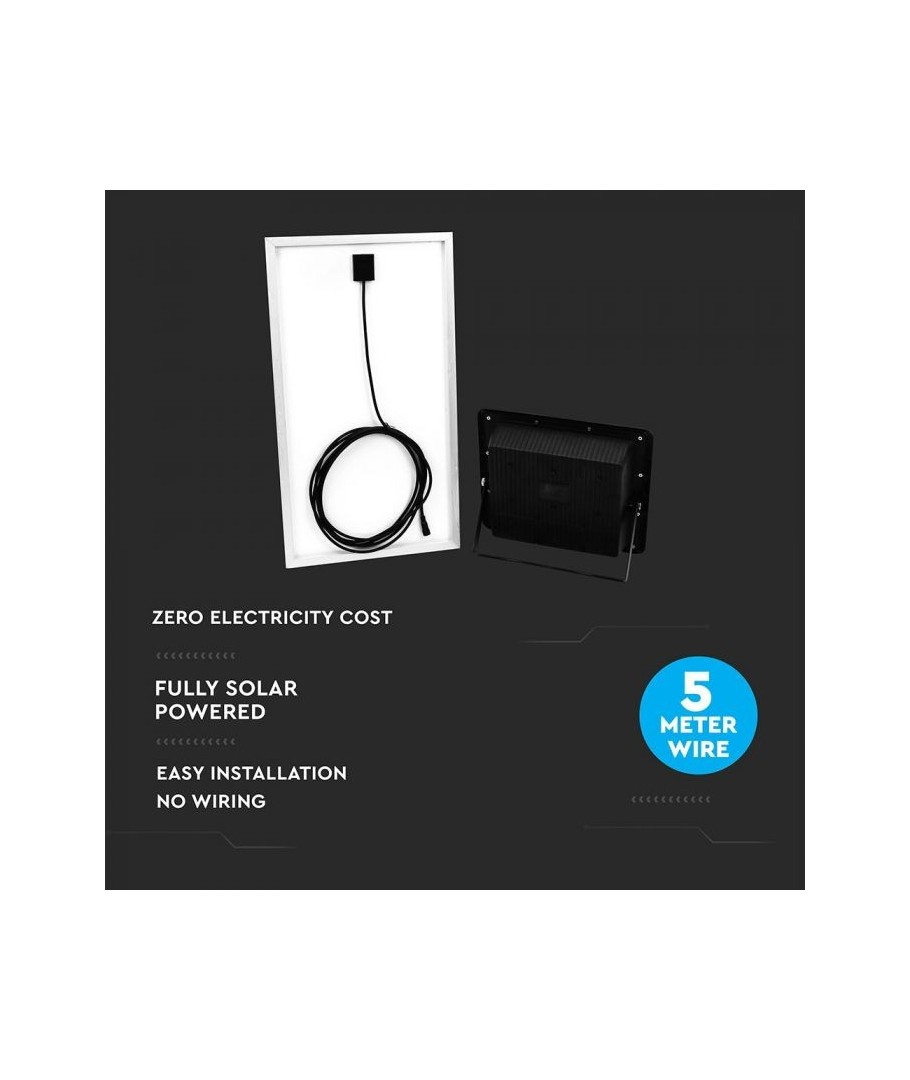 V-Tac 40W LED Solar strålkastare - Svart, en praktisk och energieffektiv lösning för utomhusbelysning. Denna strålkastare inkluderar en solcell och fjärrkontroll och är designad för att klara alla väderförhållanden med sin IP65-klassning. Den har även en praktisk timerfunktion som låter dig ställa in den så att den stängs av automatiskt efter en viss tidsperiod. Med en full laddningstid på endast 4 timmar kan denna projektor ge 8 timmars ljus. Den kommer också med en 5 meter lång sladd, vilket ger dig flexibiliteten att placera den där du behöver den.