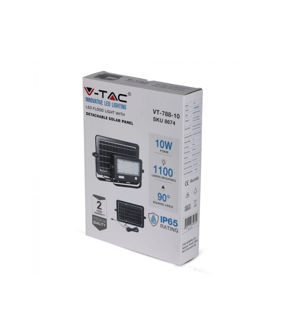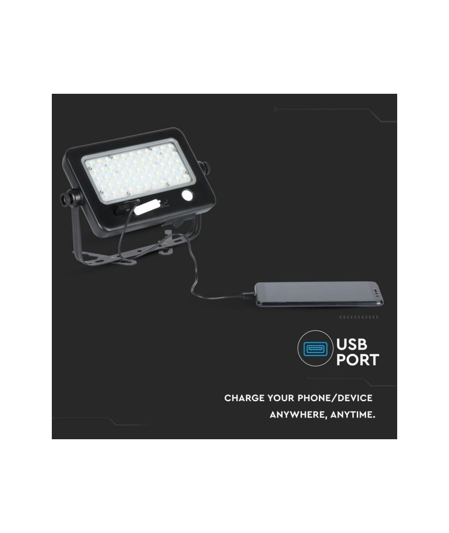 V-Tac 10W LED Solar strålkastare - Svart är den idealiska lösningen för utomhusbelysning med solenergi. Med en 10W solpanel kan projektorn laddas på bara 6-7 timmar. Projektorn har även en bekväm USB-port som låter dig ladda andra enheter.