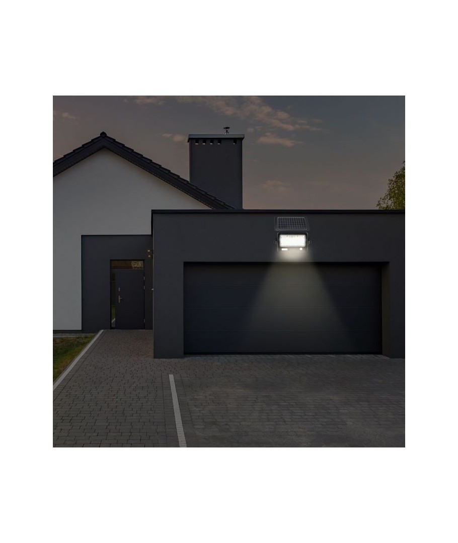 Viktigaste funktionerna:Denna strålkastare erhåller sin kraft från en inkluderad solcell, vilket gör den både hållbar och kostnadseffektiv i längden. Sensorn garanterar att ljuset aktiveras vid rörelse, vilket maximerar både säkerhet och energibesparing.