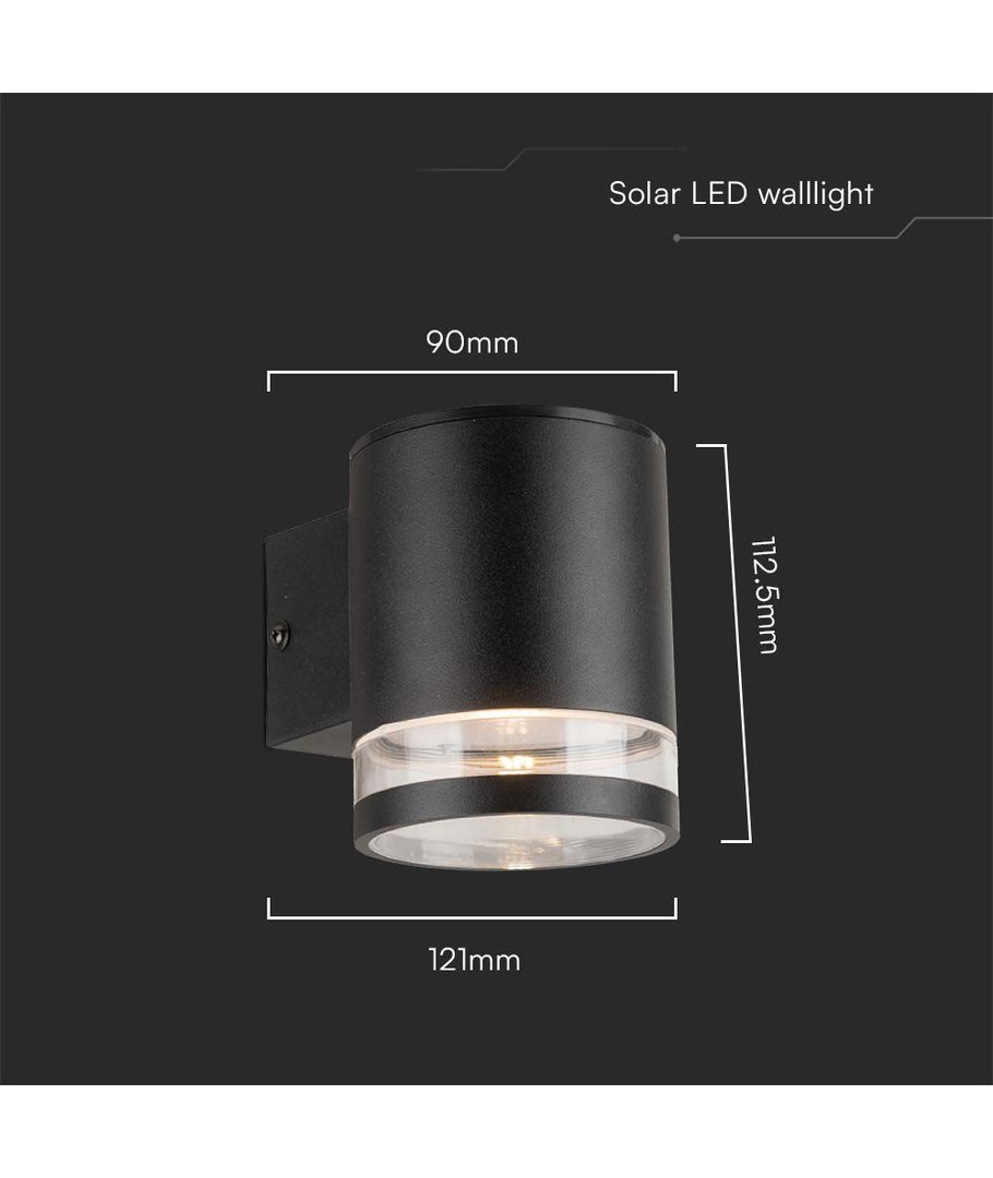 Skapa en stämningsfull atmosfär och utöka dina utomhusupplevelser med V-Tac 1W LED Solar vägglampa i svart.