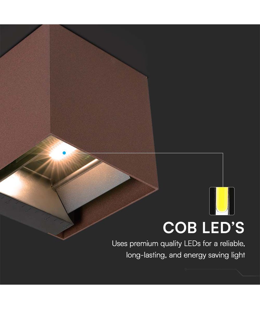 Denna vägglampa förenar stil och funktionalitet perfekt. Med Corten-ytan får ni inte bara en tålig utan även en estetiskt tilltalande belysning som enkelt smälter in i omgivningen. Lampans COB-teknik garanterar lång livslängd och låg energiförbrukning, vilket gör den till ett miljövänligt val.