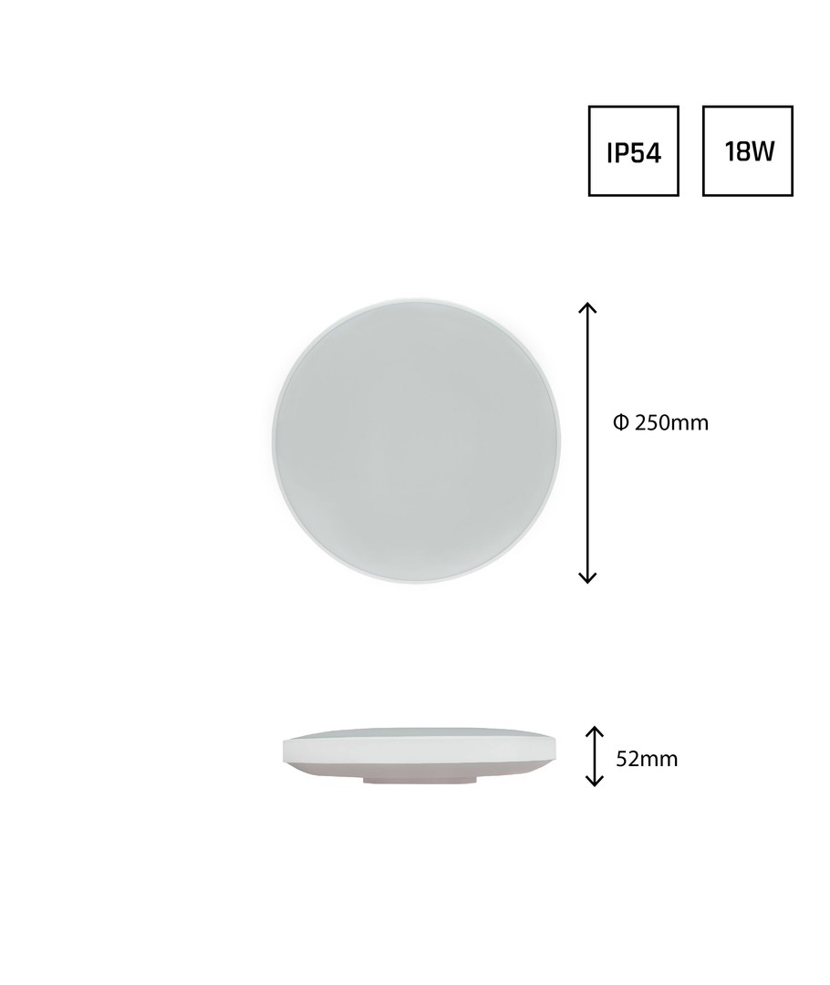 Med dimensionerna 250 x 52 mm och en IP54-klassificering är produkten tålig mot fuktig luft och vattenstänk på framsidan. Detta gör den lämplig för en rad olika miljöer, inklusive delar av hemmet där fukt är en faktor.