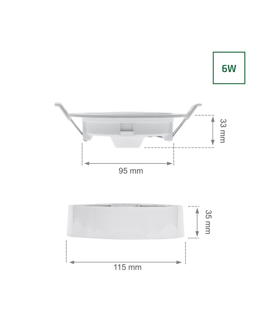 Upptäck en energieffektiv och stilren belysningslösning med denna 6W rundpanel, perfekt för både infälld och utanpåliggande installation.