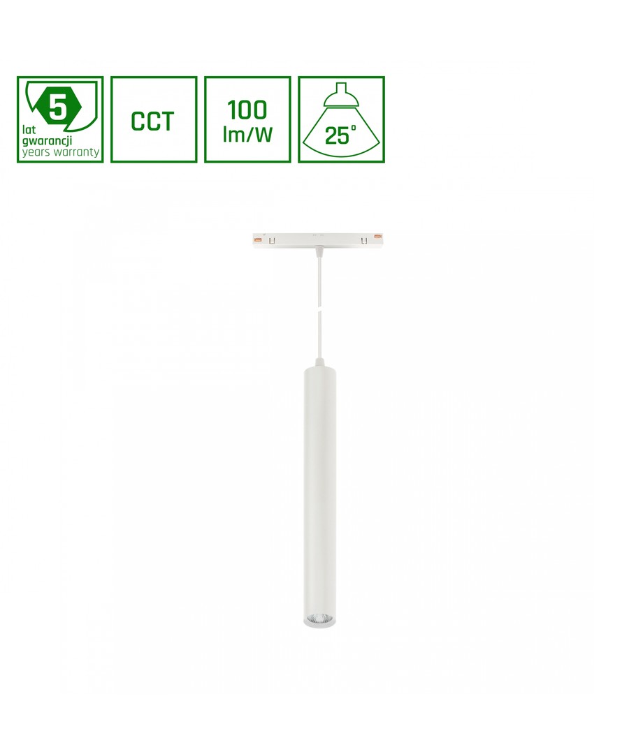 Denna eleganta skenspot erbjuder en kombination av effektivitet och ljuskvalitet som passar de flesta belysningsbehov. Med sitt moderna design och vita finish, smälter den in i alla miljöer och adderar ett stilrent inslag.