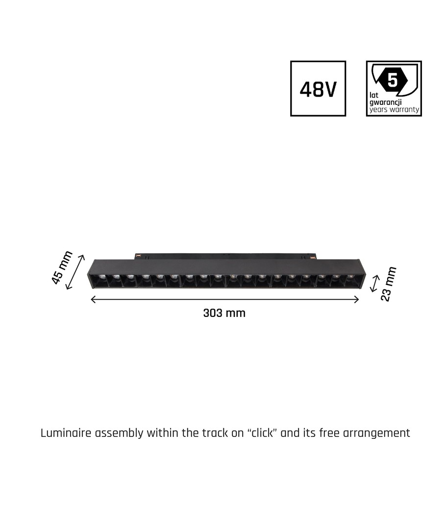 Detta är en stilren och högkvalitativ ljuslösning som erbjuder ett fokuserat ljus på 35 grader, perfekt för miljöer där kontrollerad belysning är viktig. Denna enhet har en effekt på 17W och kräver anslutning till 48V DC.