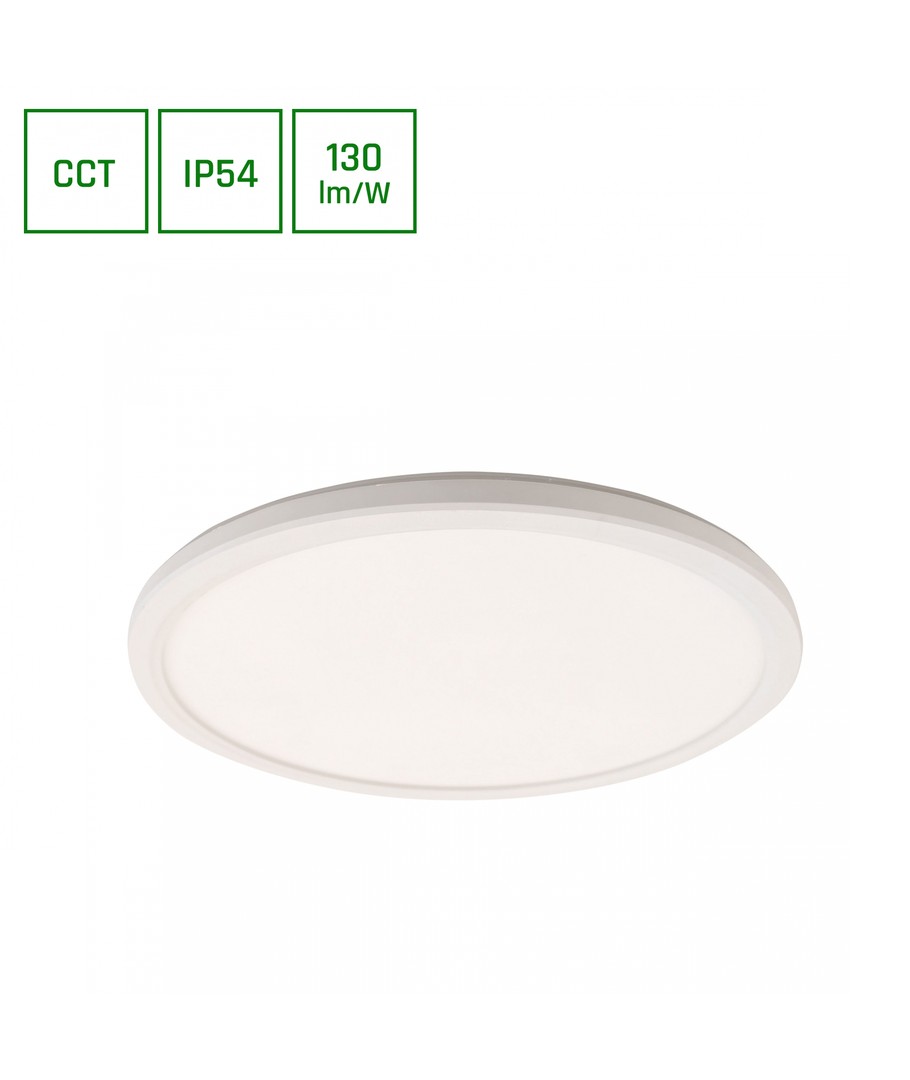 Designad för att anslutas till 230V, är armaturen enkel att installera och ger en stark ljusstyrka på 2400 lm. Med sina mått på Ø292 x 26 mm tar den minimalt med plats samtidigt som den erbjuder maximal belysningsprestanda.