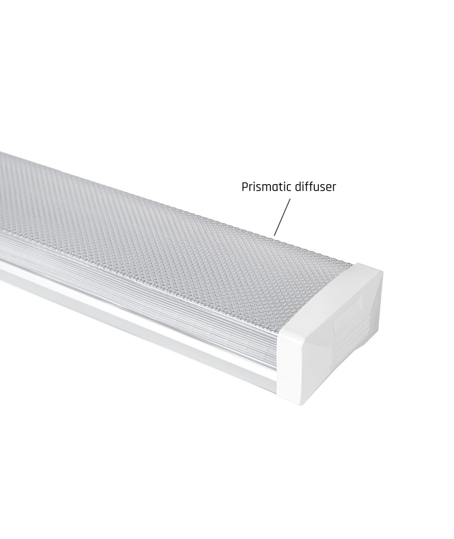 Armaturen har dimensionerna 1200 x 115 x 60 mm och är klassad med IP44, vilket betyder att den är skyddad mot fuktig luft och vattenstänk. Den är även utrustad med en integrerad ljuskälla som bidrar till dess slimmade och funktionella design.