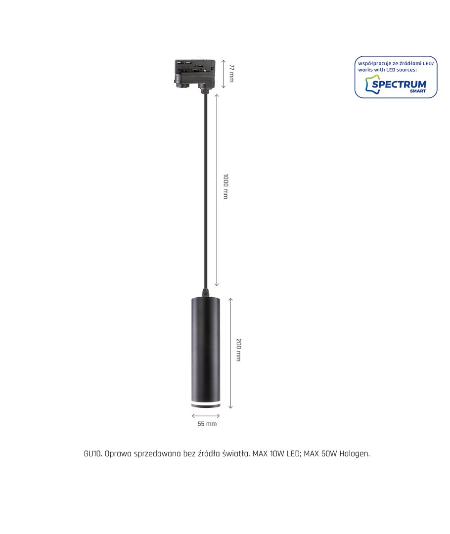 MADARA MINI RING GU10 PENDEL FÖR SKENA 3F 230V IP25 FI55*200MM SVART Spectrum Expandera