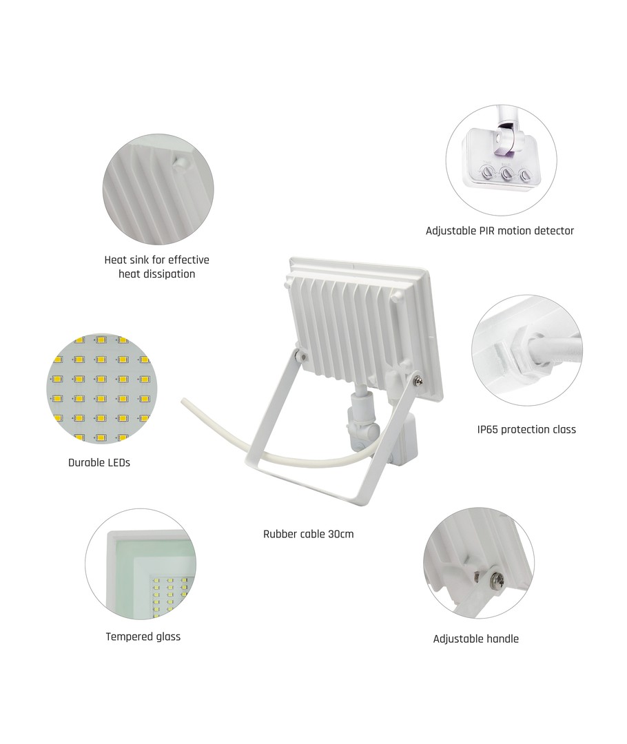 Strålkastaren erbjuder en neutralvit färgtemperatur på 4000K, vilket skapar ett behagligt ljus som är idealiskt för arbetsplatser och utomhusmiljöer. Denna färgtemperatur ger ett ljus utan blåa eller gula toner, vilket gör att upplysta objekt ser naturliga och obearbetade ut.