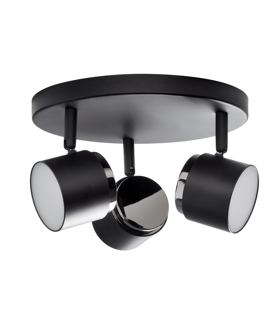 Teater är namnet på denna nya spot-serie från danska Nielsen Light - snygg 3-spot i en läcker matt svart färg, arrangerad i en cirkel på en rund platta.