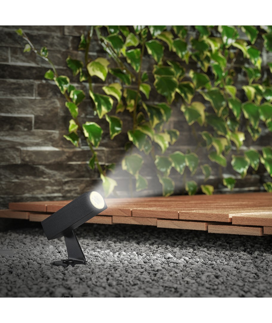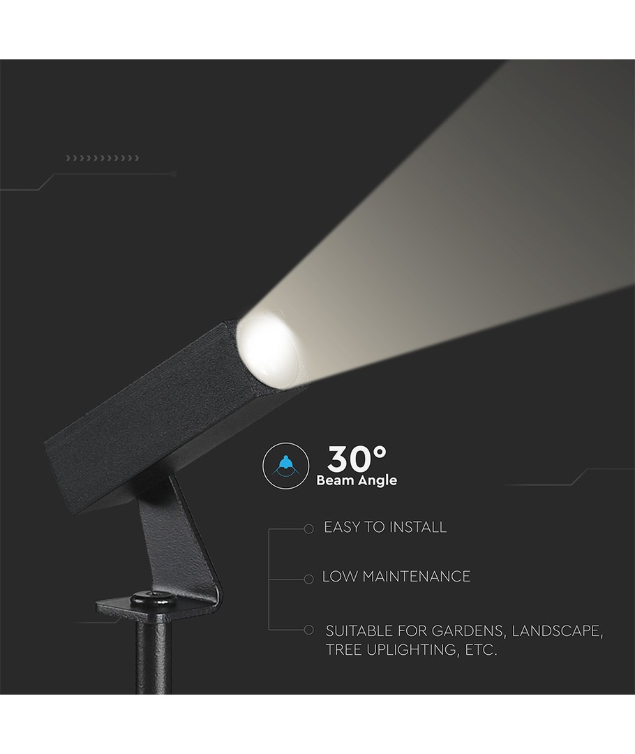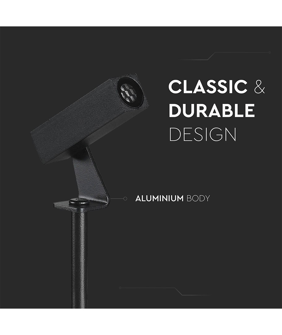 Denna 24V LED trädgårdsspot med spett är en snygg och effektiv belysningslösning för din trädgård, som kombinerar modern design med funktionalitet.