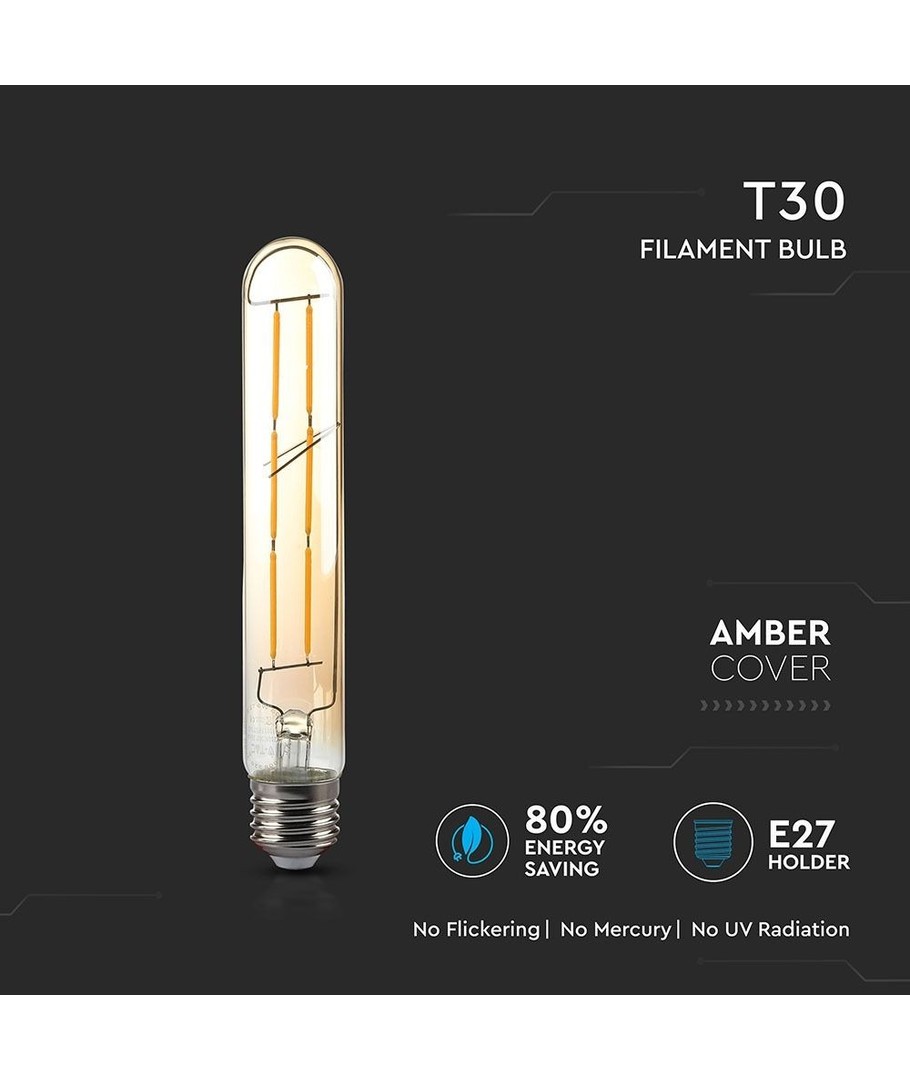 Med dimensionerna 30 x 185 mm erbjuder denna lampa en stilren och smal profil som är designad för att passa perfekt i många olika armaturer med E27-sockel. Den slimmade och förlängda formen av T30-modellen bidrar till lampans dekorativa värde och gör den till ett självklart val för både moderna och klassiska inredningsstilar.