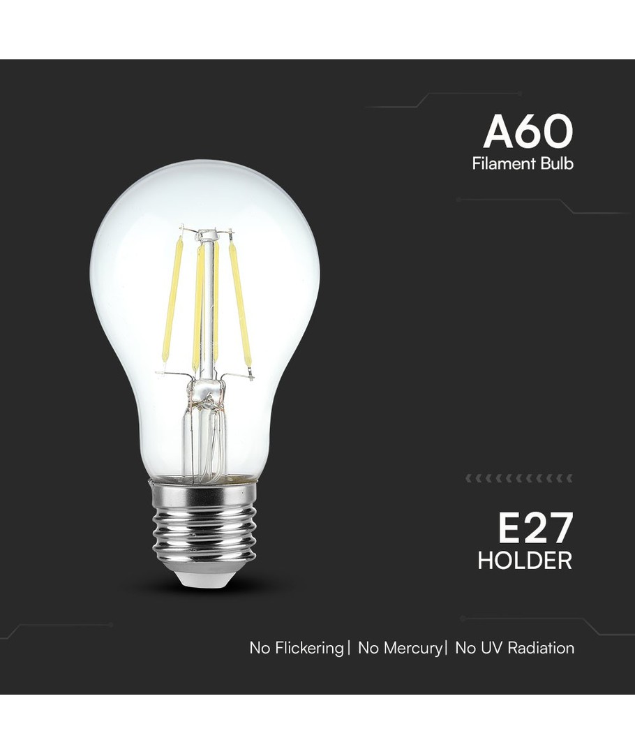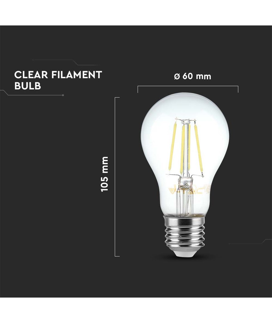 V-Tac Koltrådslampa 4W E27 - 6500K, A60 är den idealiska belysningslösningen för dem som söker både energieffektivitet och stilfull design.