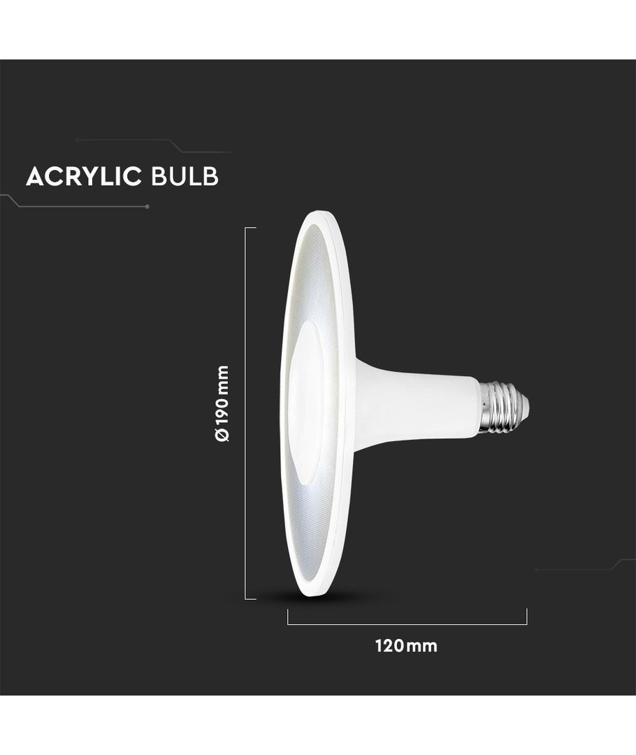 Med måtten 120 x Ø190 mm passar lampan lätt i många olika armaturer. Notera att den har ett IP20-skydd, vilket innebär att den inte är vattentät och därför bör användas inomhus i torra miljöer.
