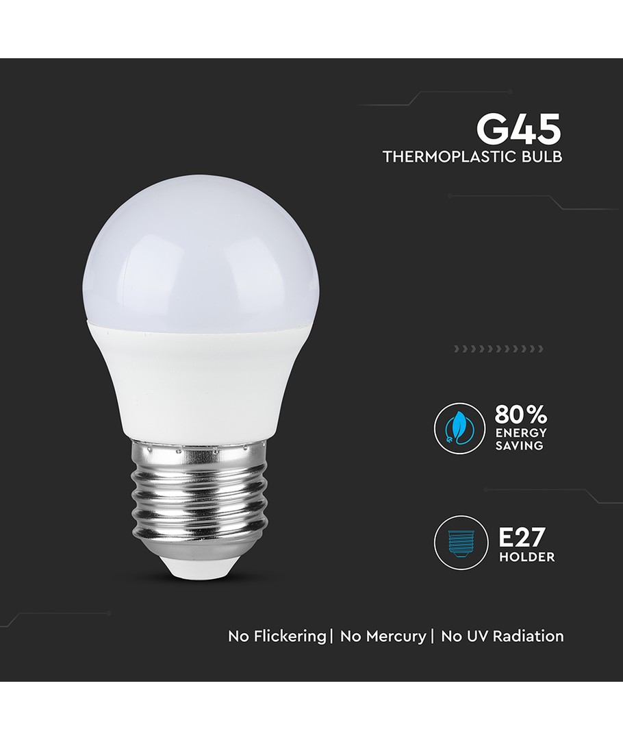 Denna 6,5W E27 LED-lampa - G45 kombinerar effektivitet med hög ljusstyrka, vilket gör den till det perfekta valet för både hemmet och arbetsplatsen.