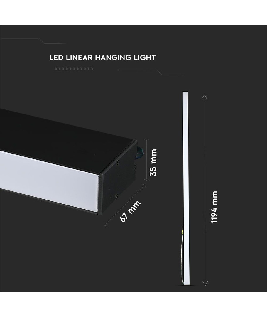 120cm, 100lm/W, Svart, taklampa för kontor, inkl. vajerupphängning