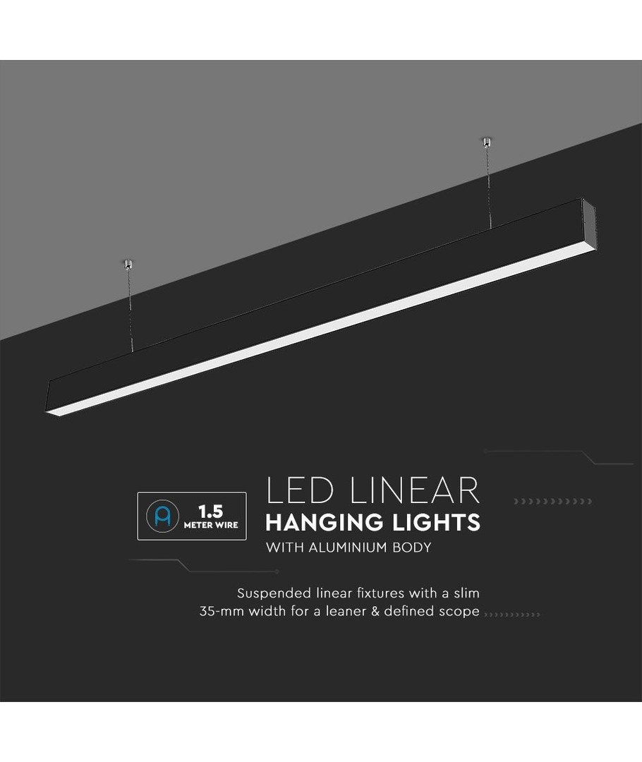150cm, 120 lm/W, Svart, taklampa för kontor, inkl. vajerupphängning