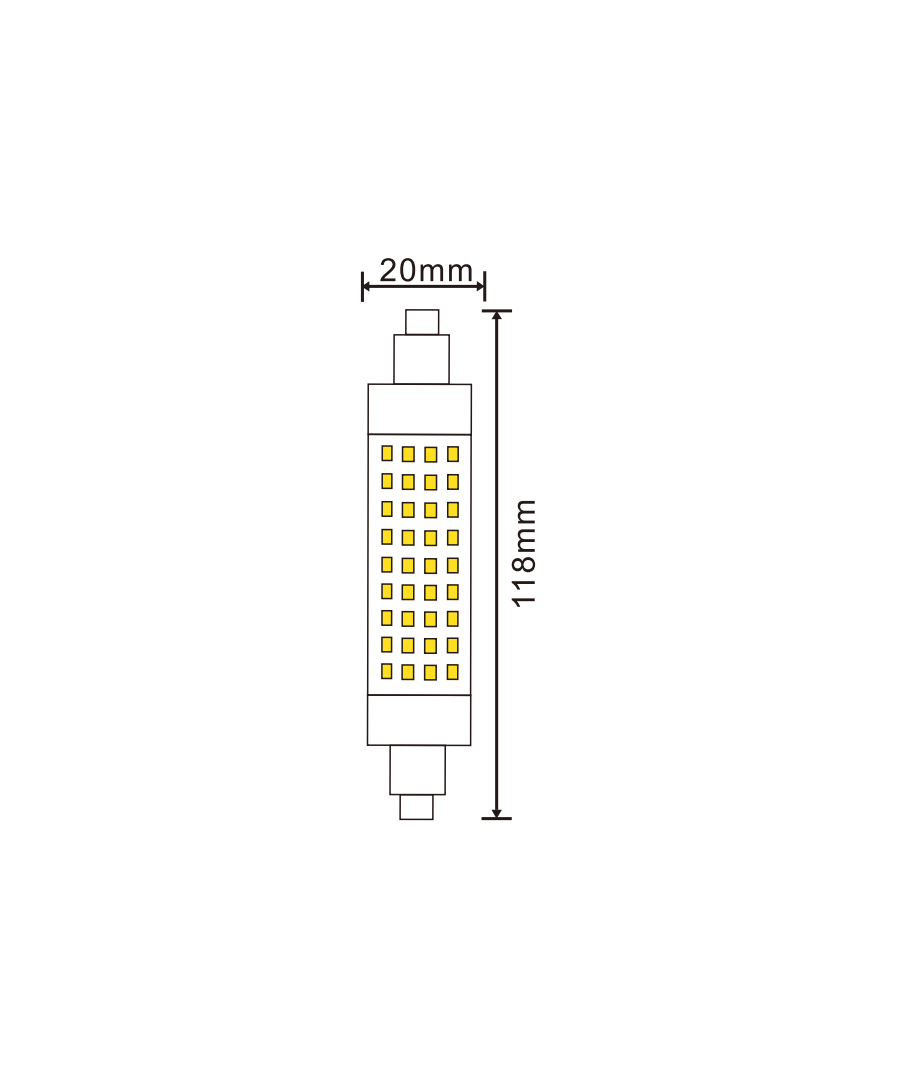 Denna LED-lampa mäter 118 x Ø20 mm, vilket gör den enkel att integrera i olika armaturer utan att vara skrymmande.