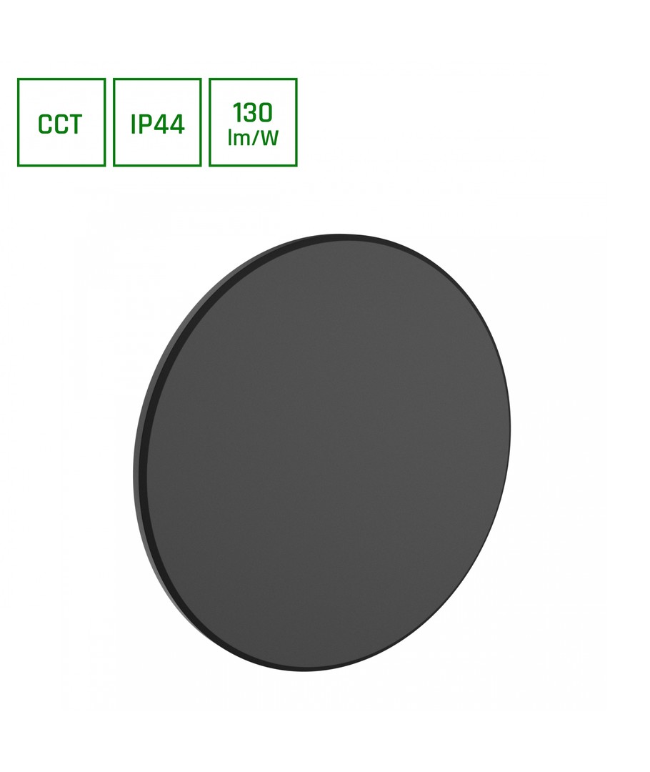 Lampan har en diameter på 25 cm och en tunn profil på endast 47 mm, vilket gör den både diskret och modern i sitt uttryck. Den är färgad i svart, vilket ger ett sofistikerat utseende som passar perfekt i de flesta utomhusmiljöer.