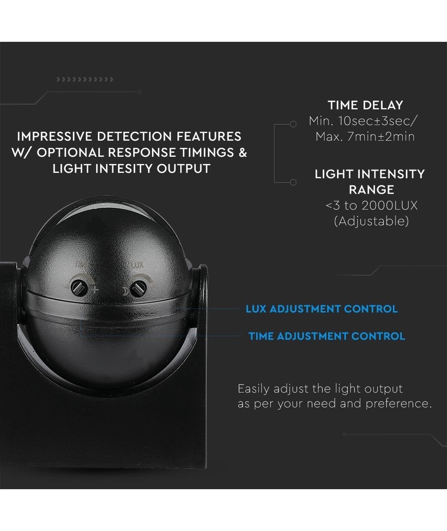 Du ställer in hur länge du vill att ljuskällan ska tändas efter att rörelsessensorn är aktiverad (från cirka 10 sekunder upp till cirka 7 minuter).