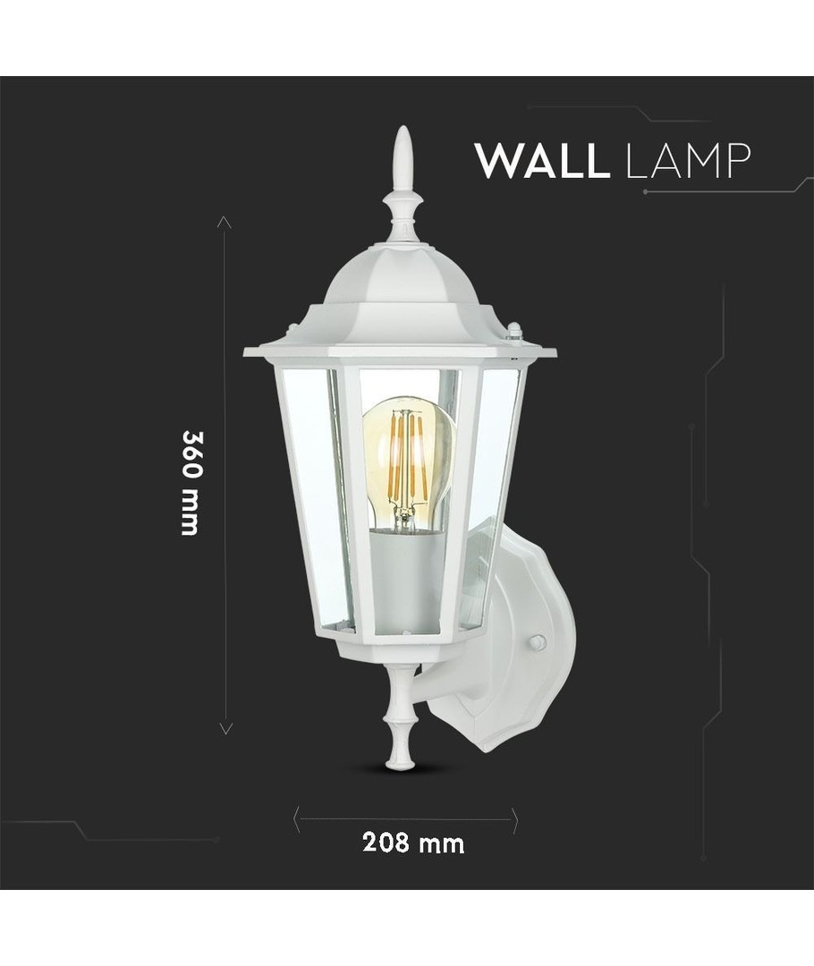 Med sina dimensioner på 208 x 360 mm erbjuder denna lampa en perfekt balans mellan diskret och iögonfallande design. Trots sin robusta konstruktion bevarar den en elegans som förhöjer vilket utomhusutrymme som helst.