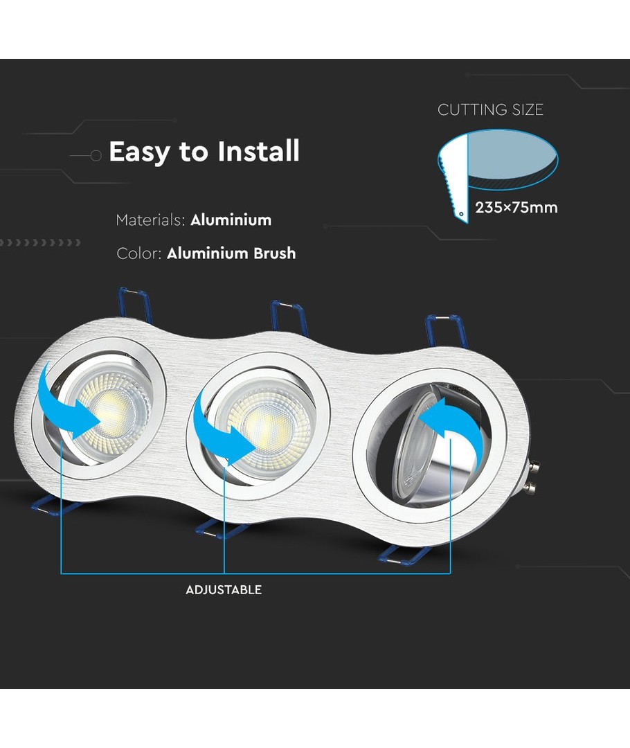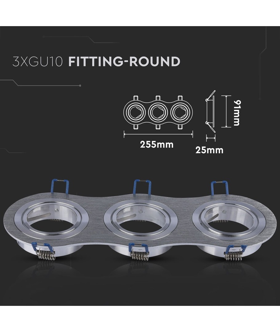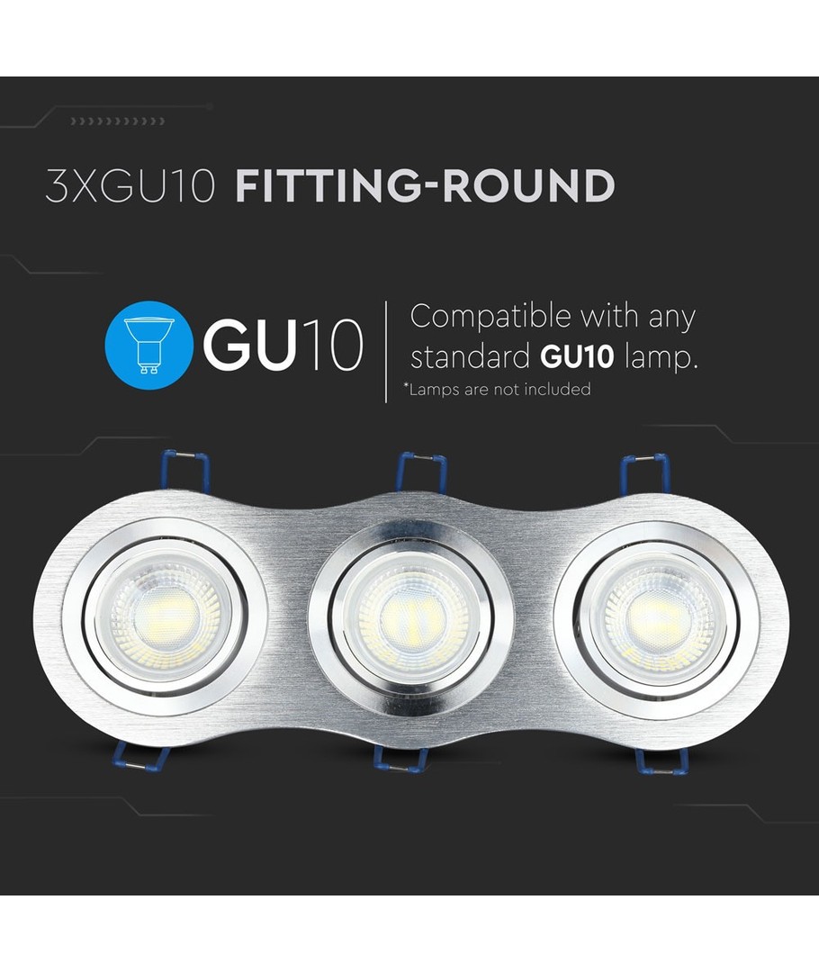 3xGU10 infälld spot - Rund, borstad aluminium, IP20 inomhus, utan ljuskälla V-TAC Expandera
