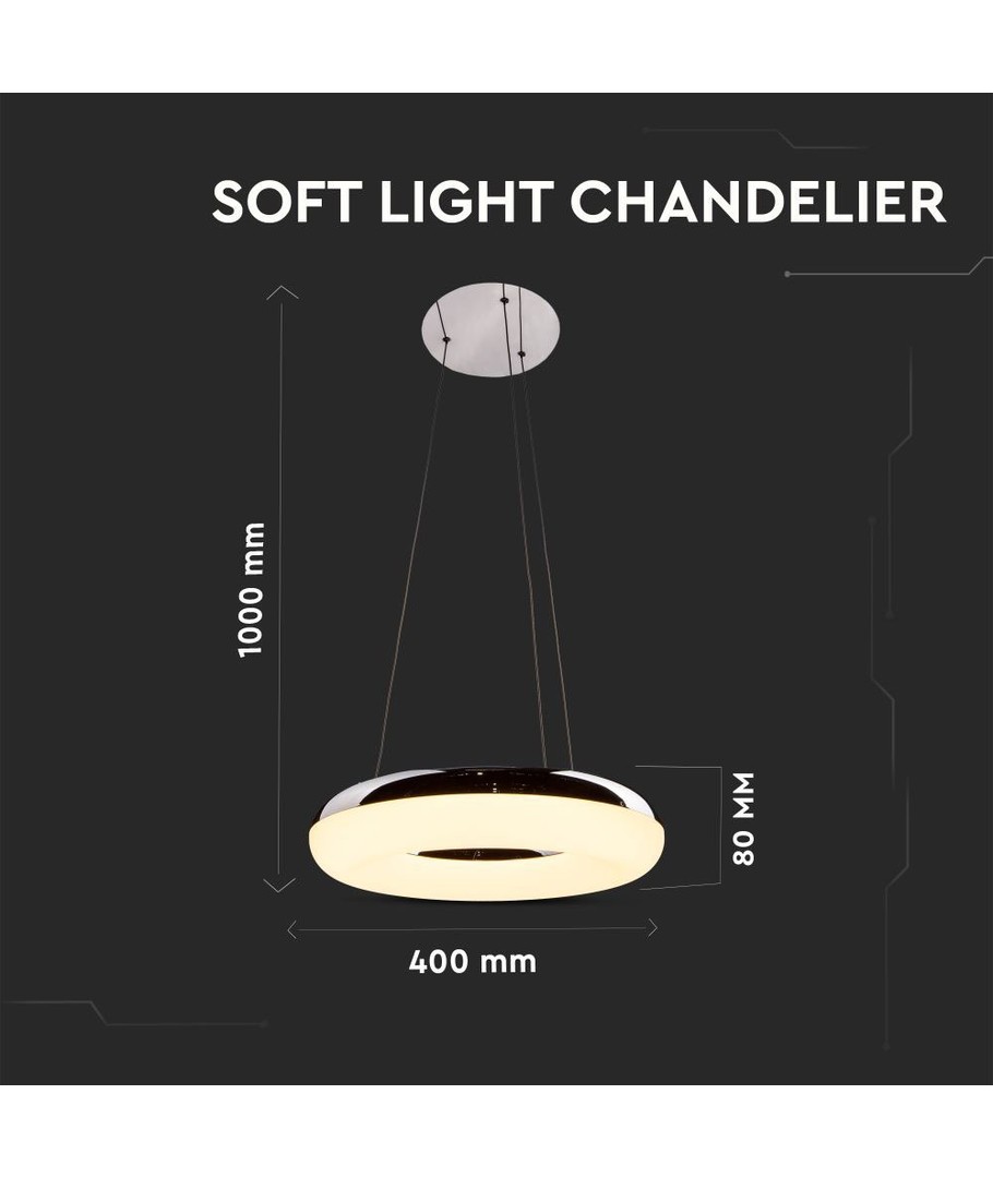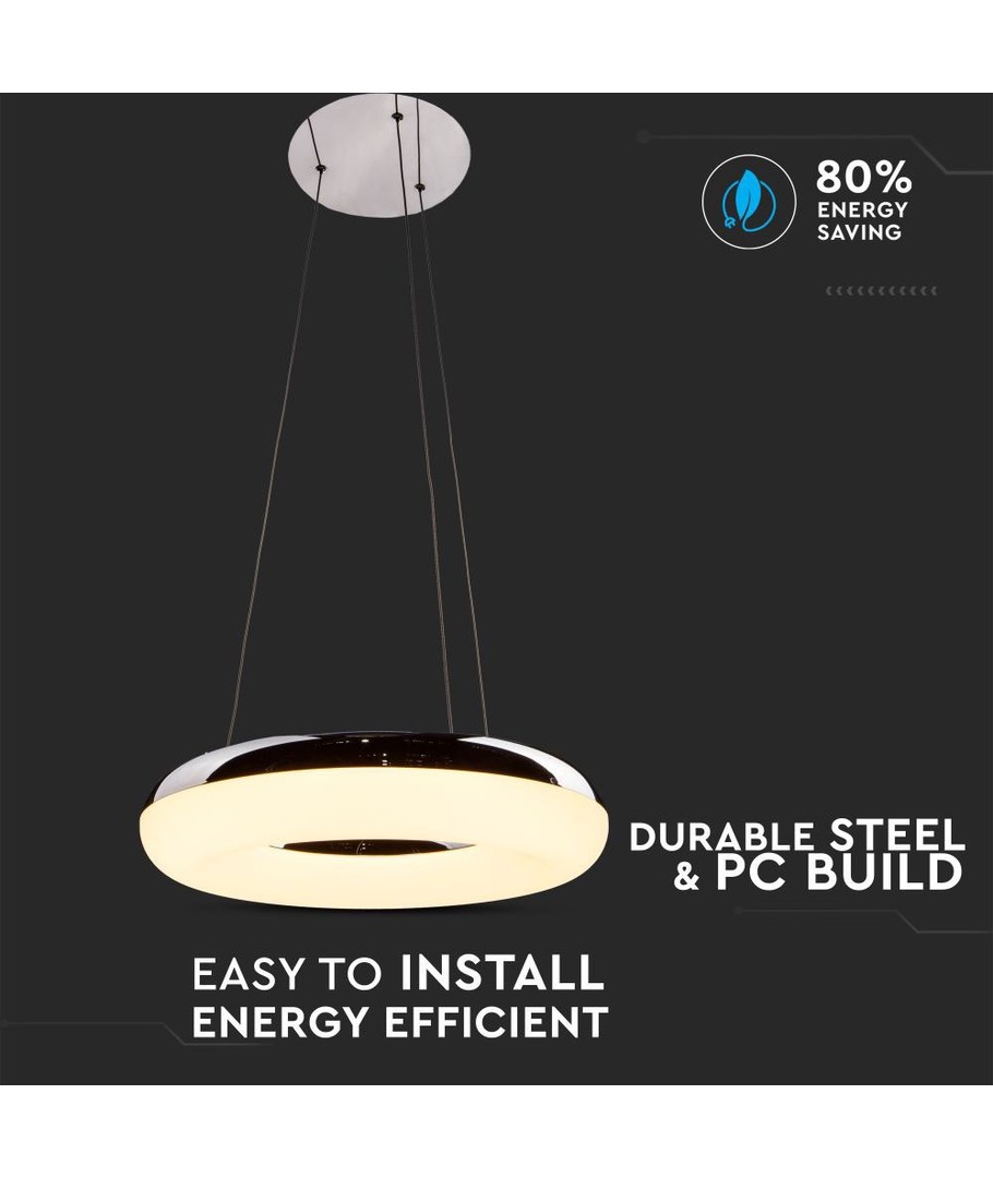Denna LED pendellampa med en krom finish kombinerar stil och praktik med en ljusstyrka på 2800 lm, vilket ger ett klart och behagligt ljus. Lampan passar perfekt för både hem och kontor, och ger en avkopplande atmosfär med sitt varmvita sken på 3000K.