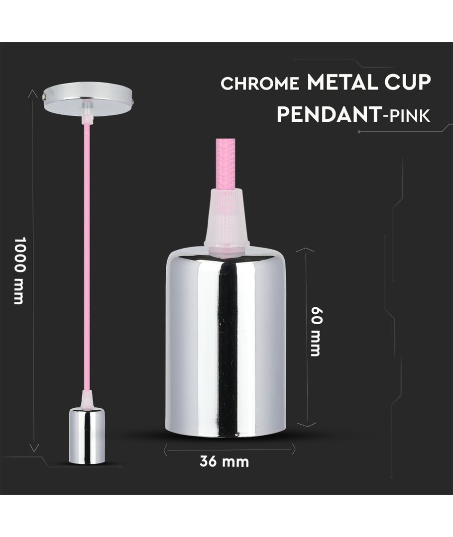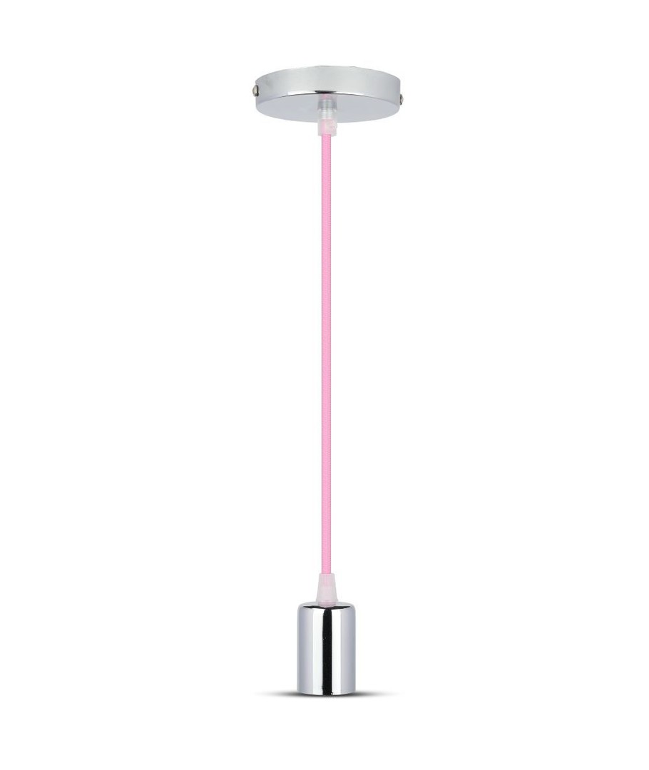 Chrome pendelupphäng med rosa sladd - E27 sockel, metallkopp, utan ljuskälla V-TAC Expandera