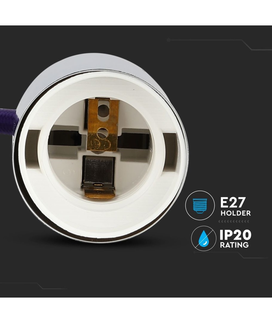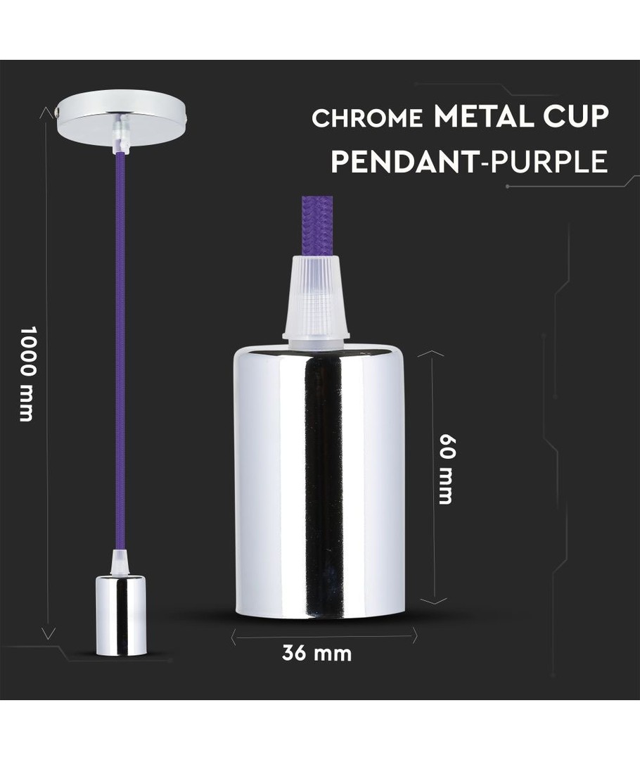 E27 pendelupphäng i krom med lila sladd - Ø3,6 cm, 5 års garanti, utan ljuskälla V-TAC Expandera