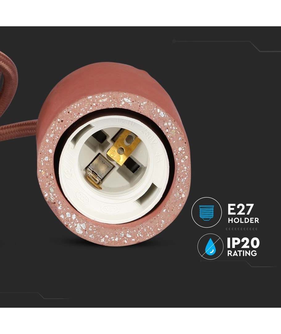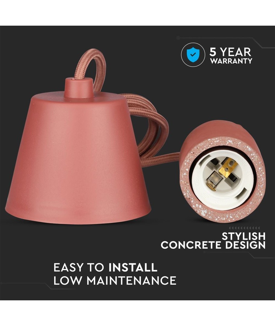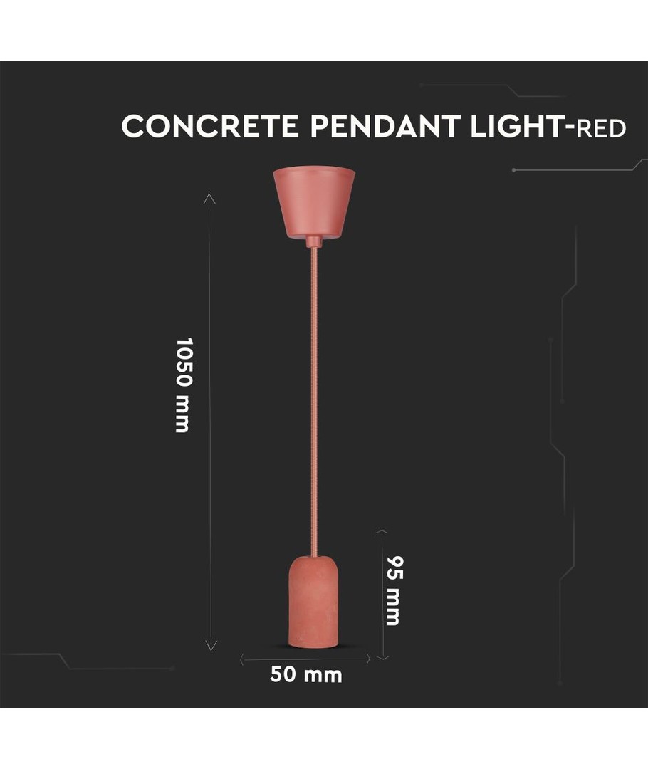 Röd betong pendellampa, E27 sockel - Rund, Ø5cm, utan ljuskälla, IP20 inomhus V-TAC Expandera