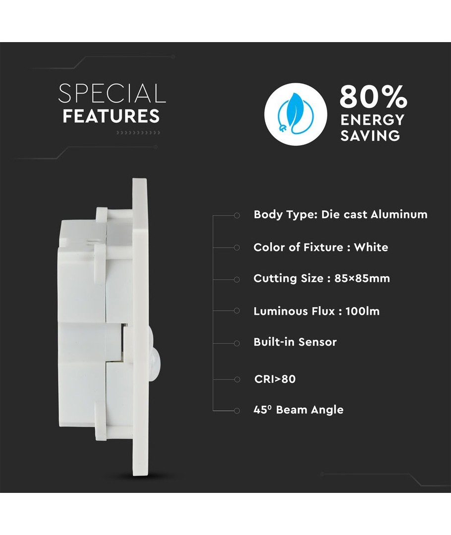 Upptäck en smart belysningslösning med vår 3W LED downlight som kombinerar effektivitet och hög kvalitet. Denna downlight är försedd med en inbyggd sensor som täcker 130 grader, vilket gör den idealisk för energibesparande och automatiserad belysning.