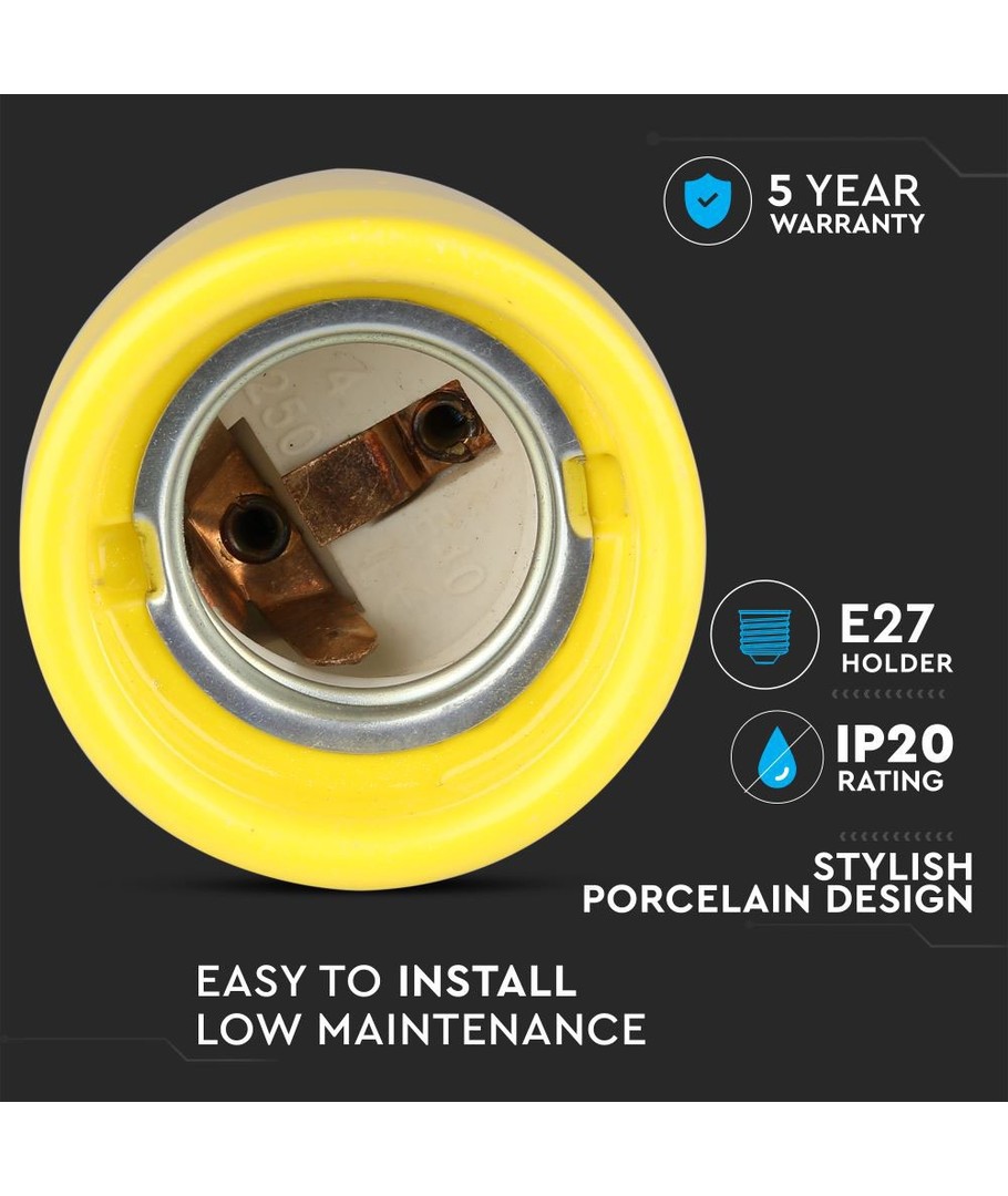 Gul E27 porslinssockel - Max 60W, Ø4,7 x 6,4 cm, IP20 inomhus V-TAC Expandera
