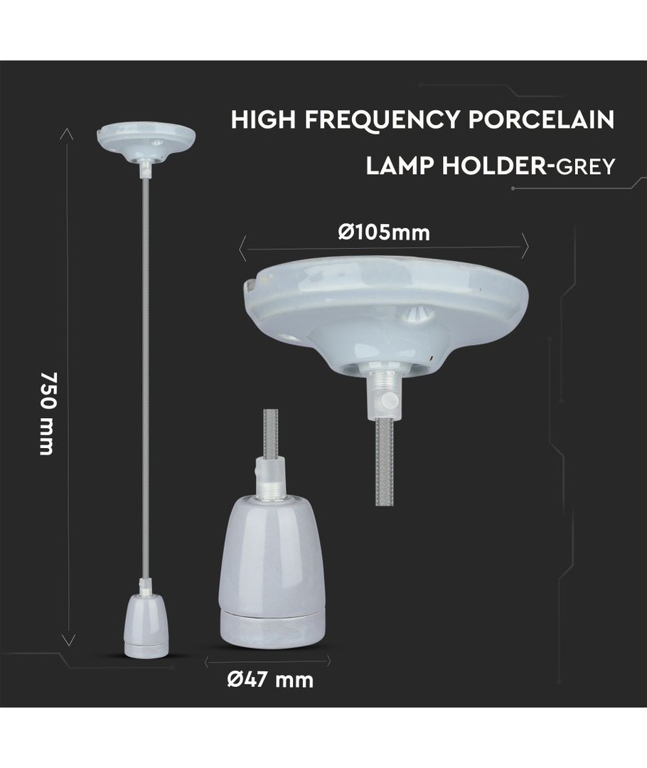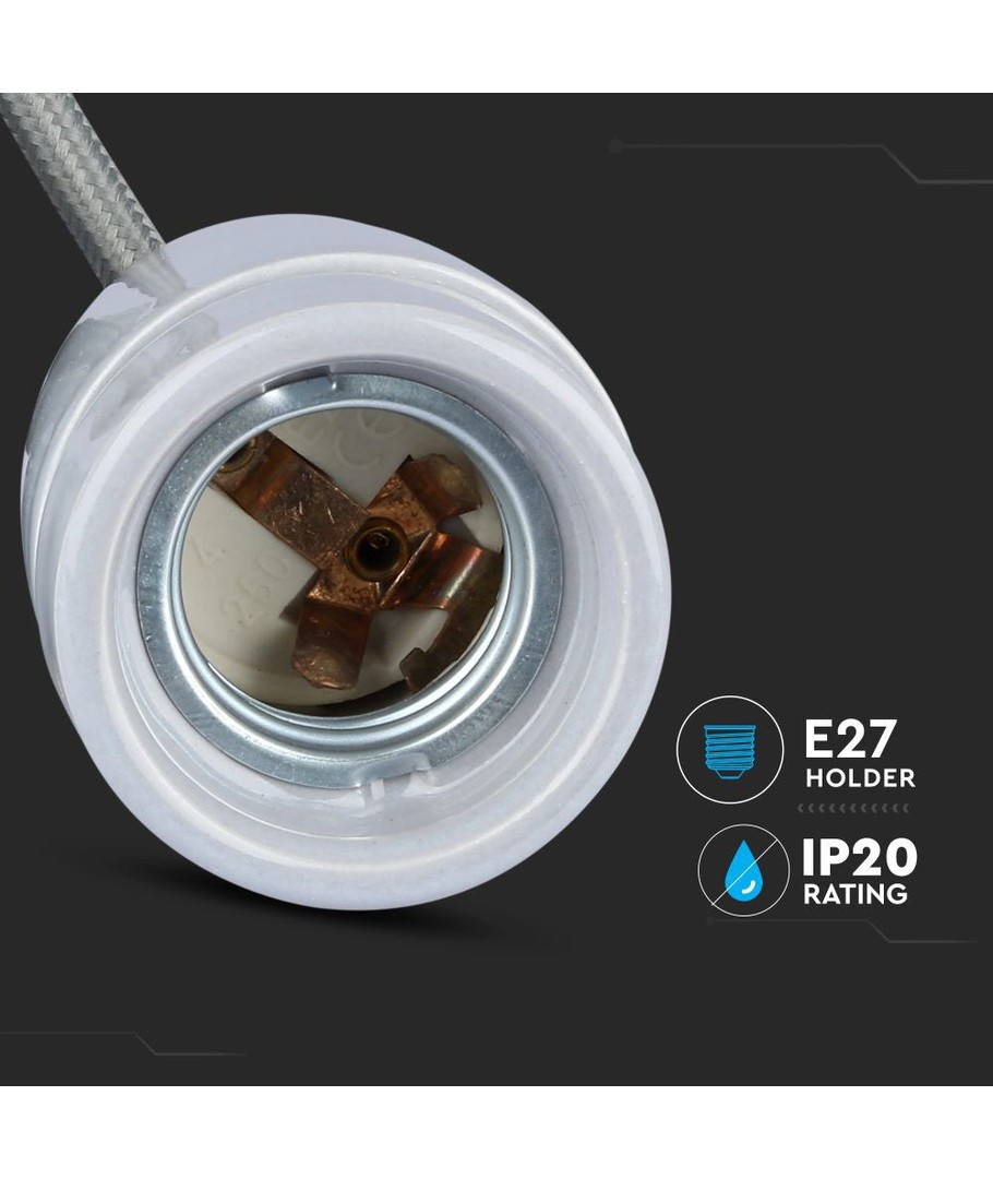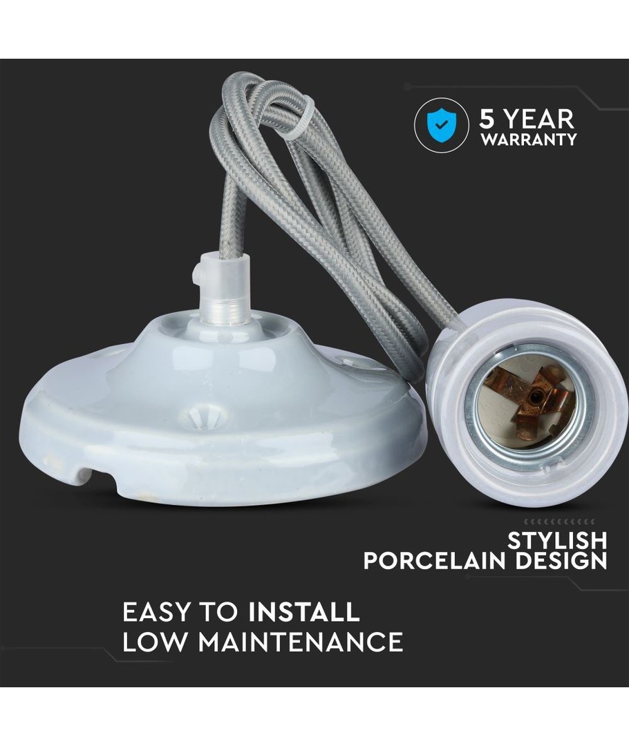 E27 porslinssockel med sladd - Grå, pendelupphäng, max 60W V-TAC Expandera