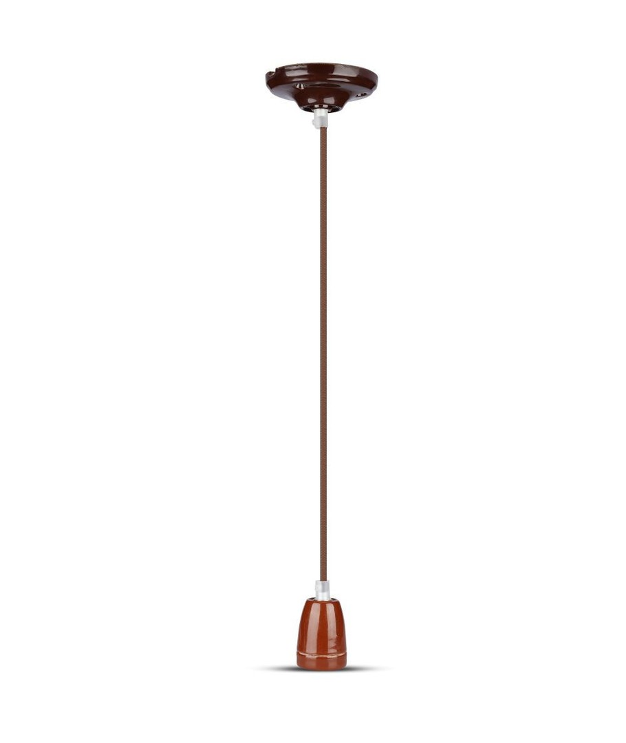 E27 porslin pendelupphäng, brun - Max 60W, Ø4,7cm, 68cm sladd, utan ljuskälla V-TAC Expandera