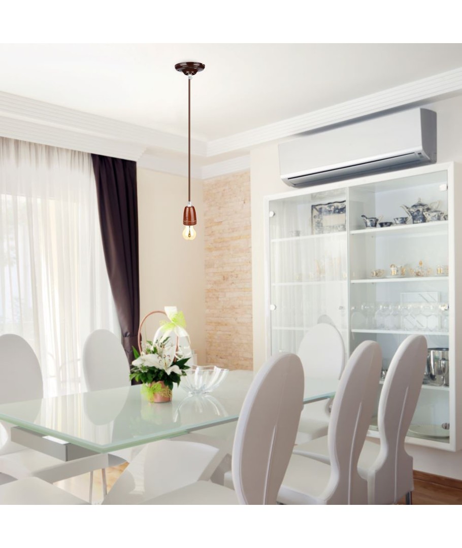 E27 porslin pendelupphäng, brun