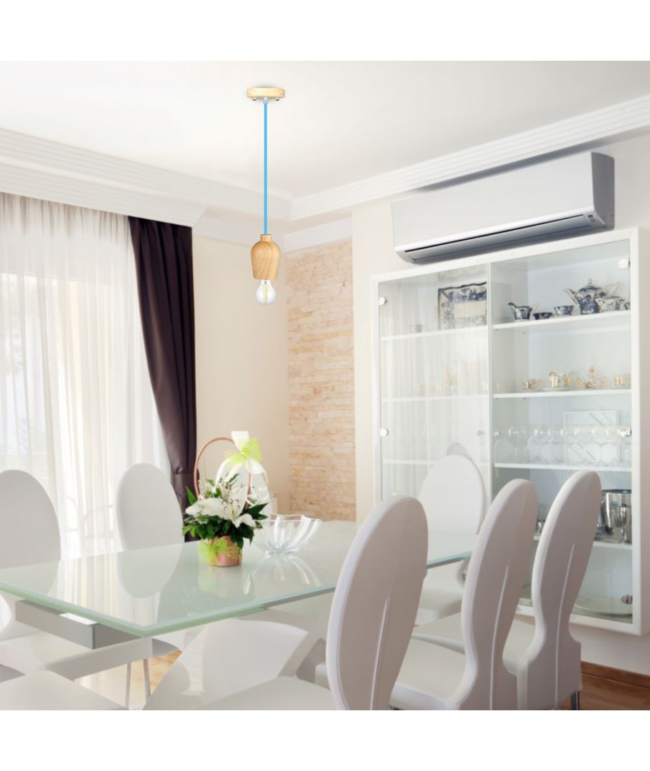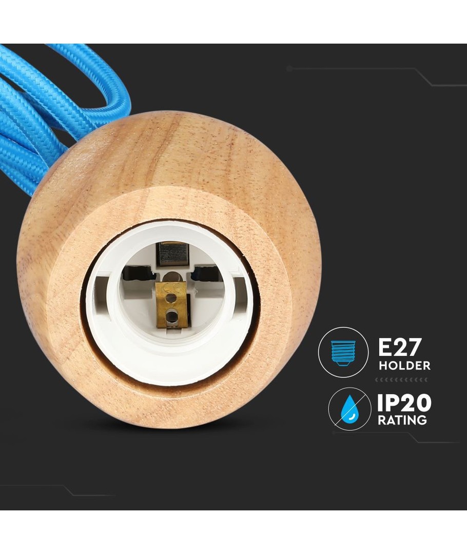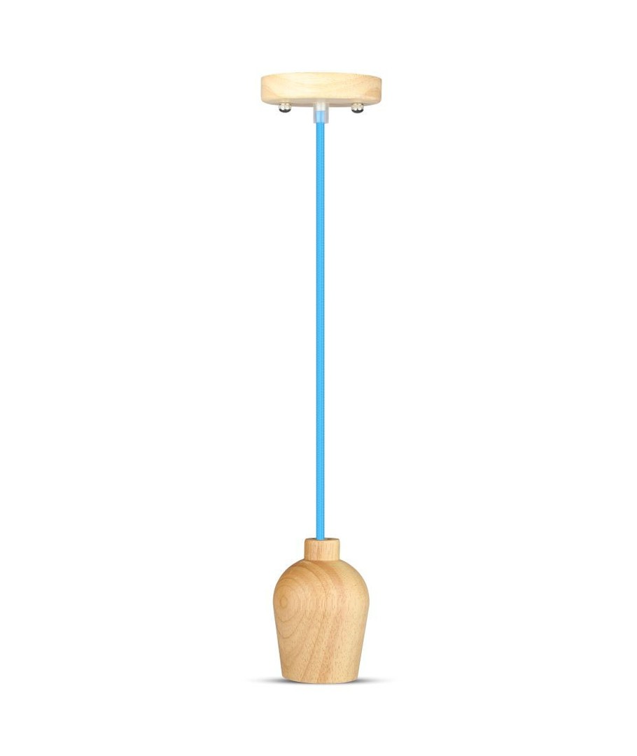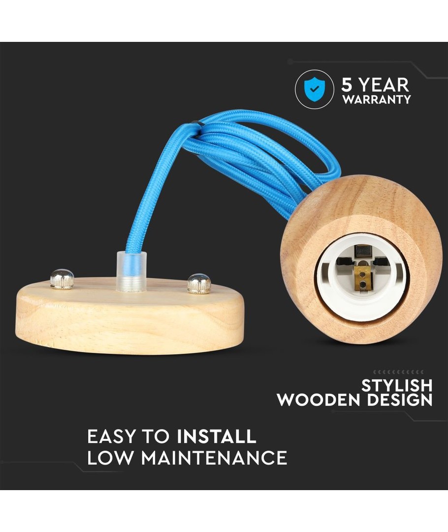 E27 pendelupphäng i trä med blå sladd - Max 60W, elegant design, utan ljuskälla V-TAC Expandera